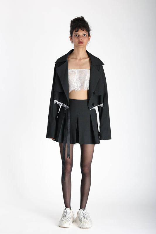 KHUSHI KAPOOR IN UNFINISHED CROPPED BLAZER PAIRED UP WITH BOX SWIRL SKIRT