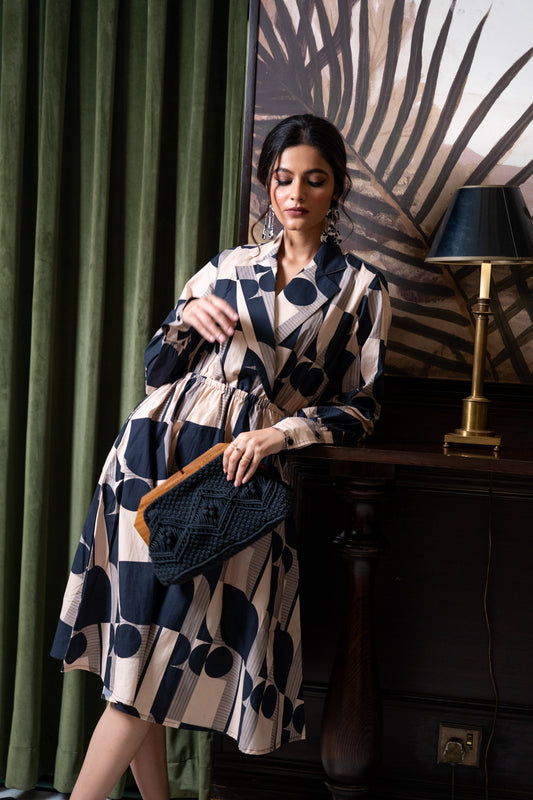 Black Offwhite Geometric Printed Dress