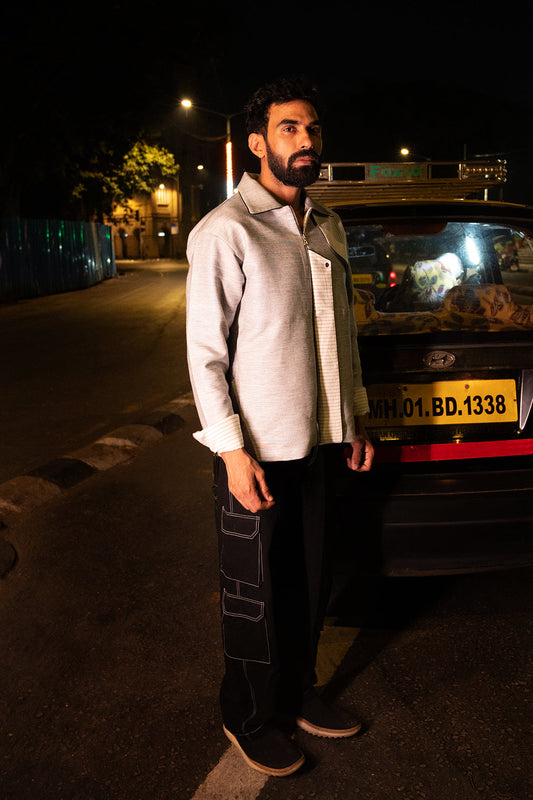 ARJUN KANUNGO IN BLACK CONTRAST JACKET SET