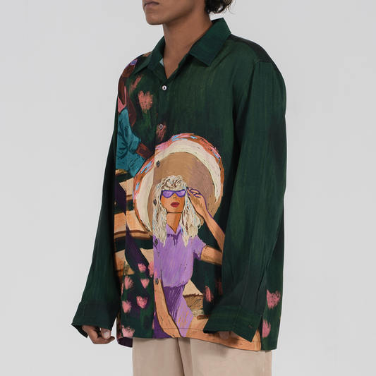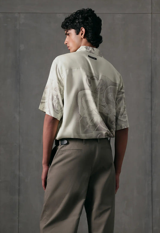 Aquatic Plant Ivory Full Sleeves Cotton Shirt