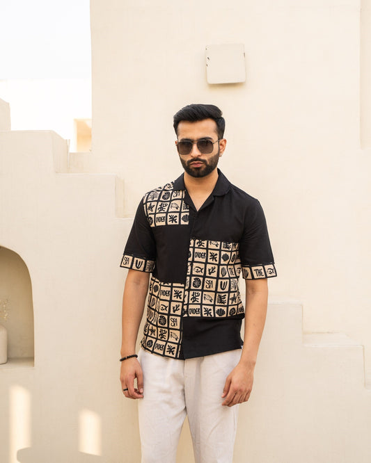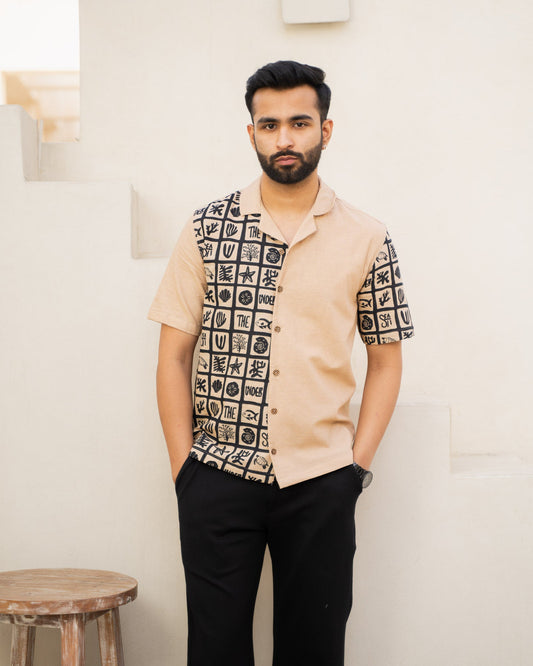 Aqua Block Terracotta Lower Patch Full Sleeves Linen Shirt