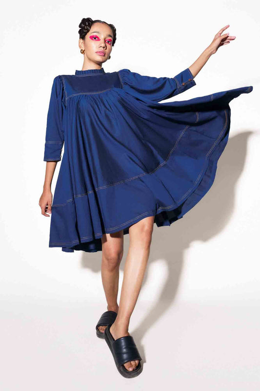 Indigo Topstitch Dress