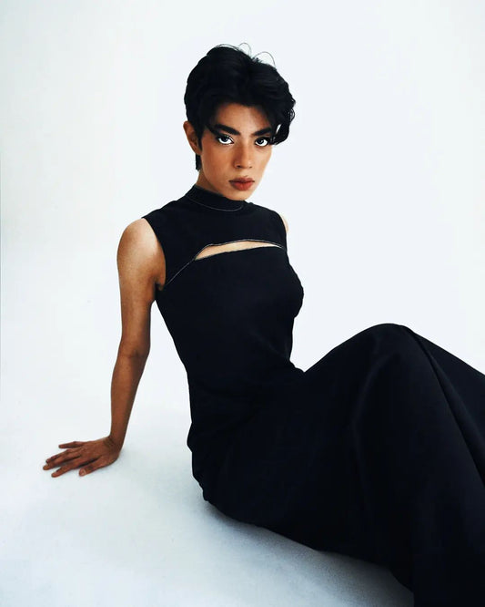 ELONGATING BLACK CUT-OUT DRESS
