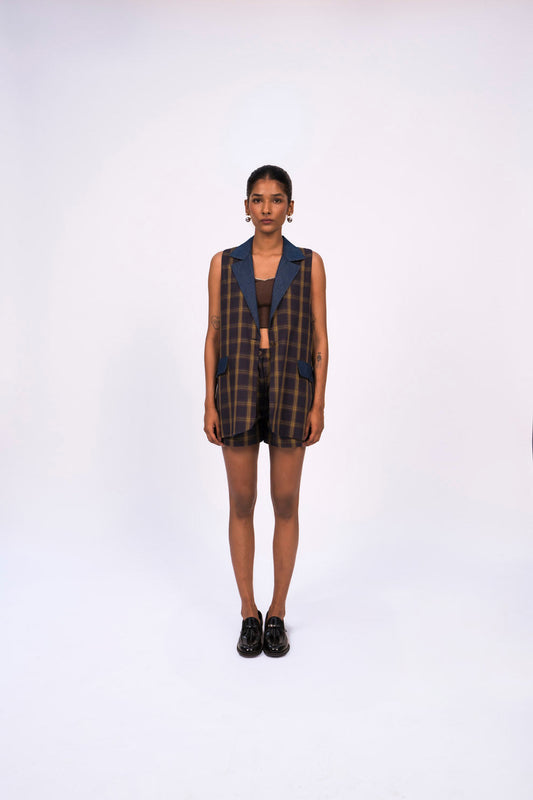 NAVY CHECK VEST