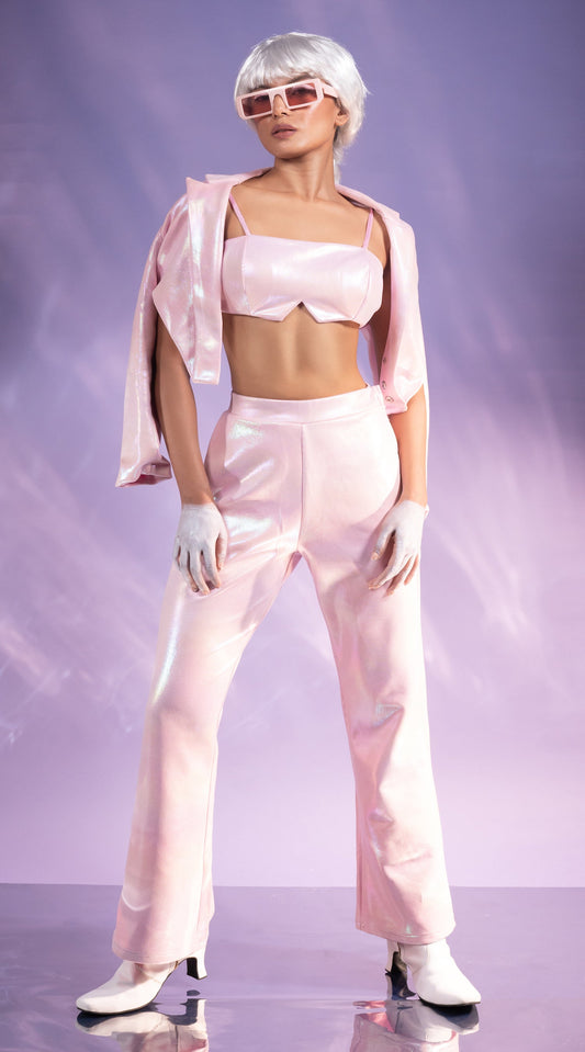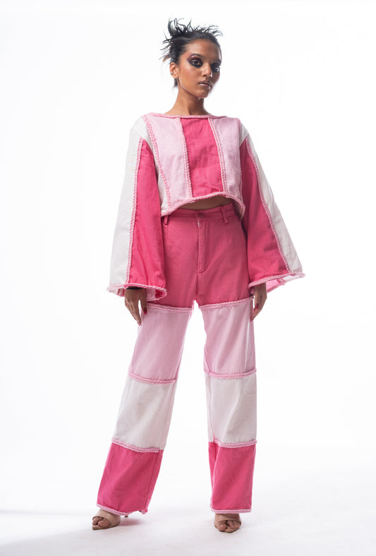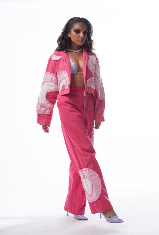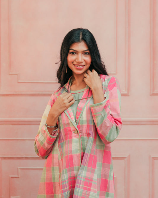 Pink and Mint Green Madras Cotton Long Jacket and Dress set.
