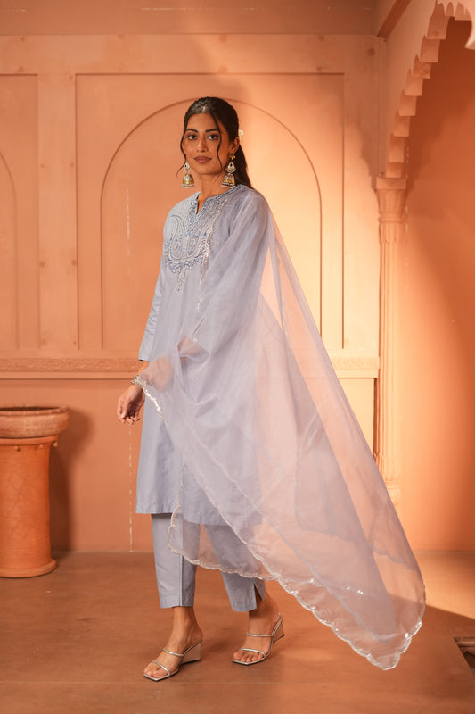 Powder Blue Lawn Embroiderd Kurta Set With Dupatta