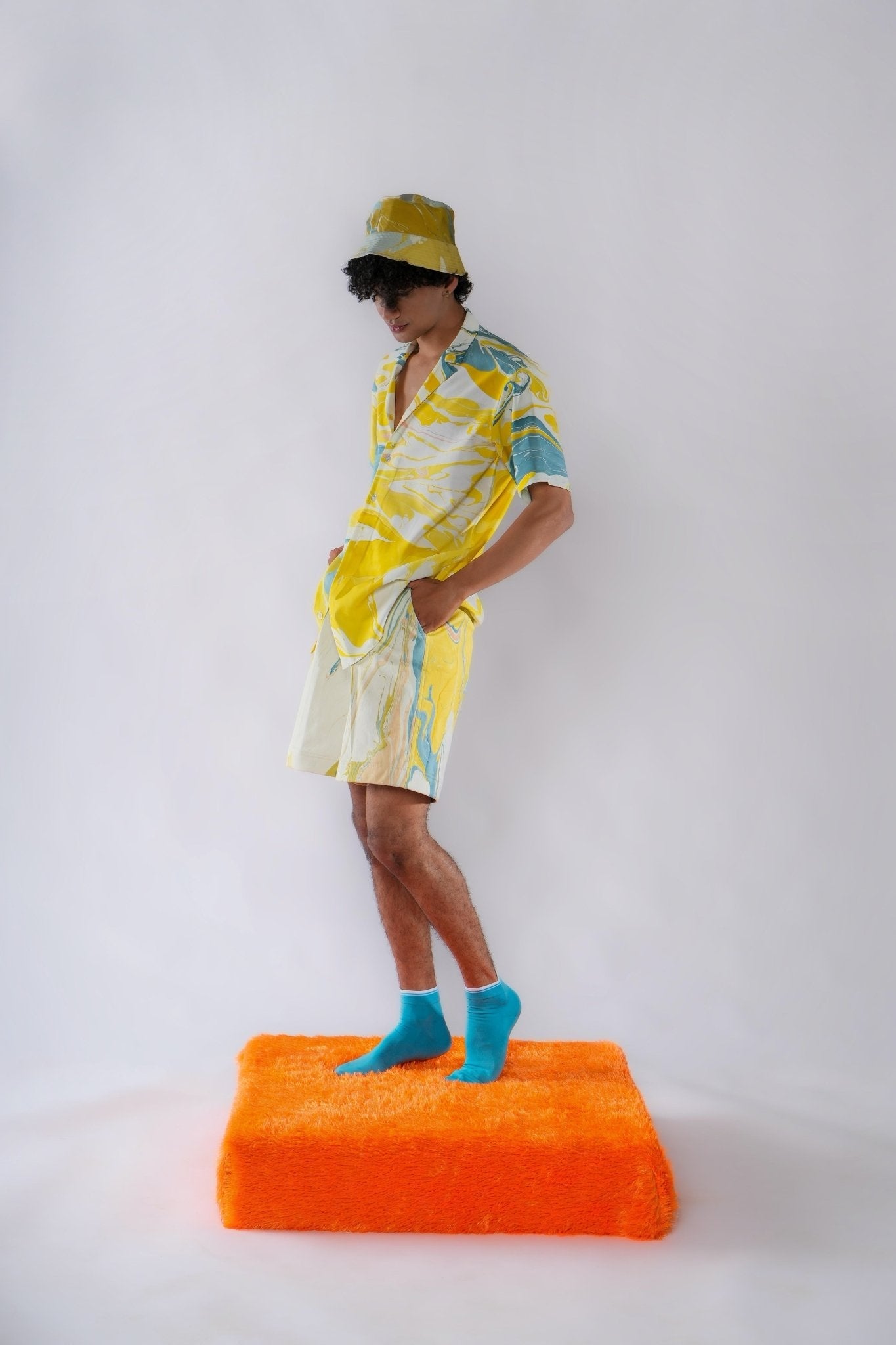 The Hibiscus shirt is meticulously crafted using a hand-marbled technique, ensuring that each piece is uniquely beautiful. The combination of subtle shades and the Cuban collar design adds a relaxed yet refined touch, making this shirt a versatile addition to your wardrobe. The light pastel tones blend seamlessly, creating a serene and harmonious look that’s perfect for any occasion.
