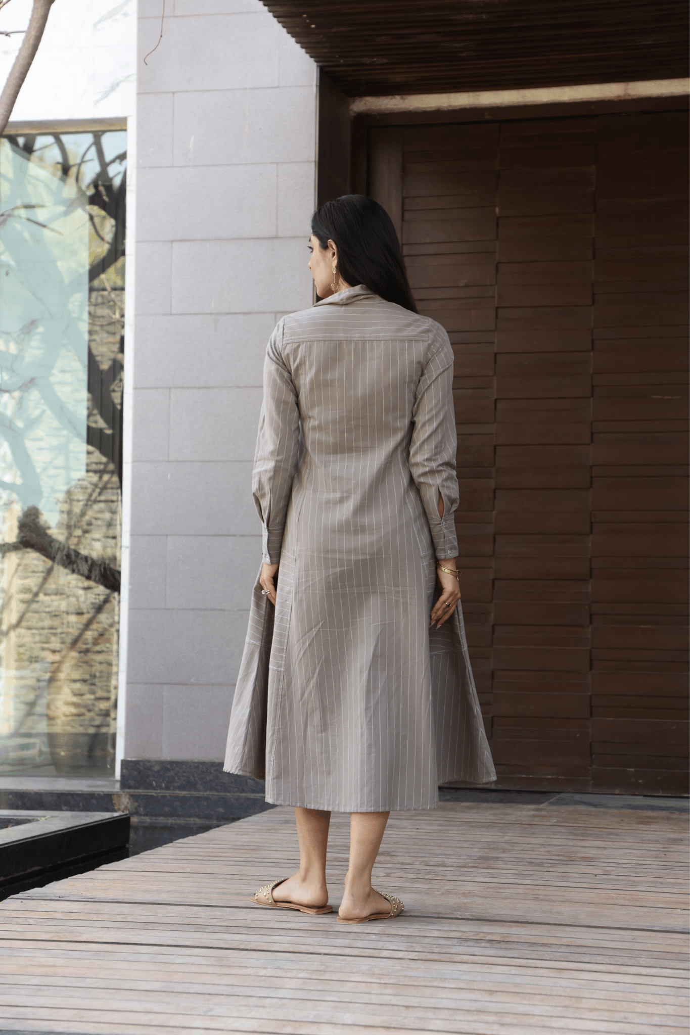 Step into understated elegance with Angan ,a breezy striped midi dress that effortlessly blends comfort and sophistication.