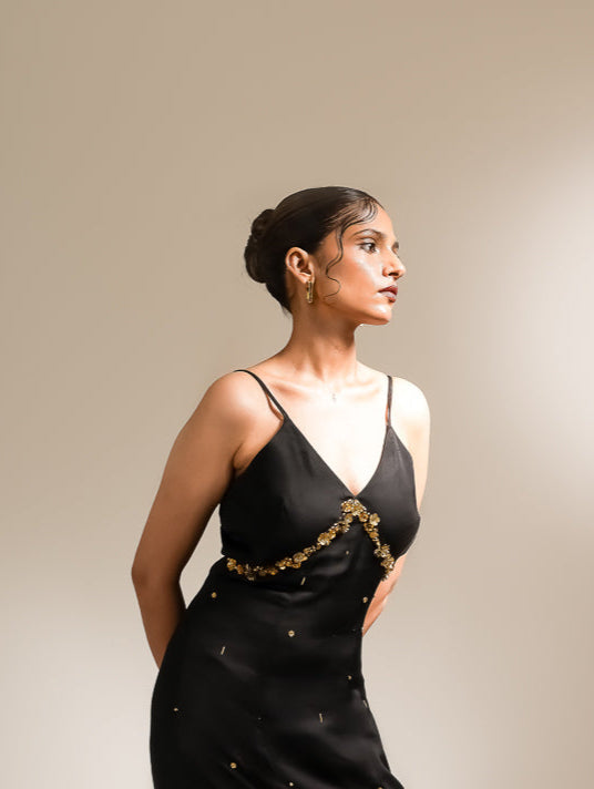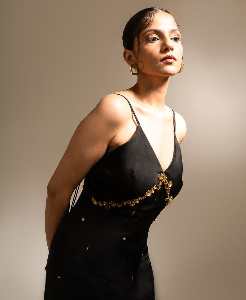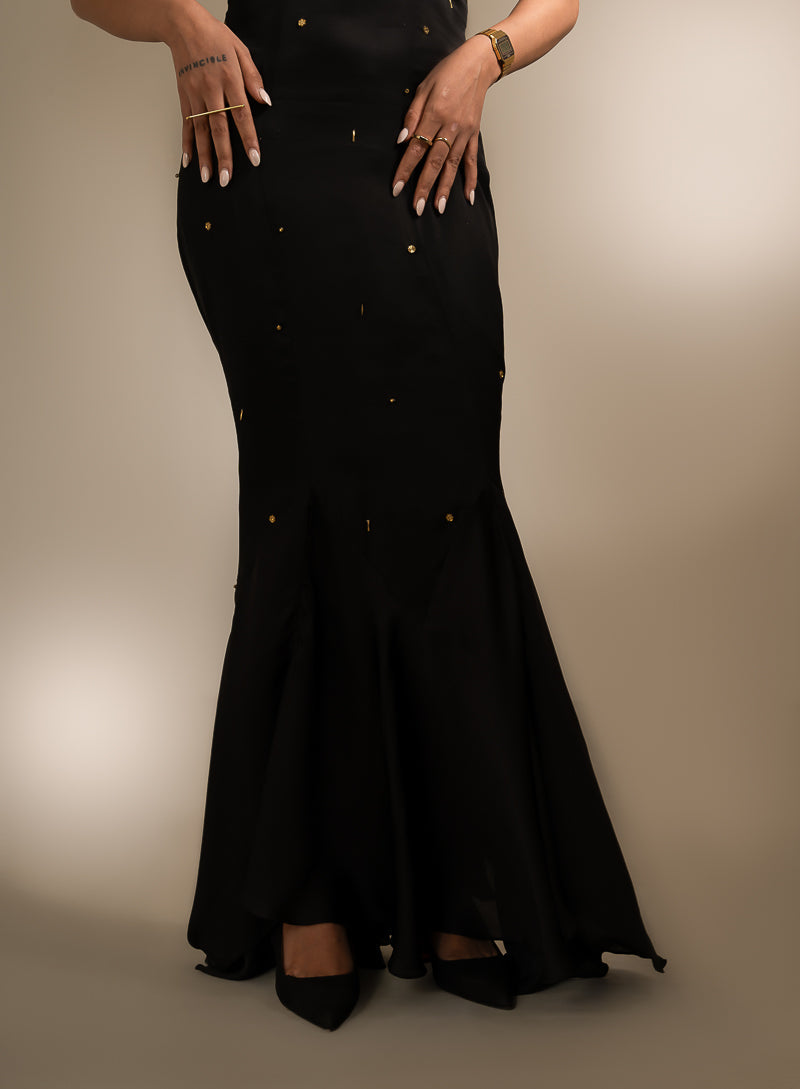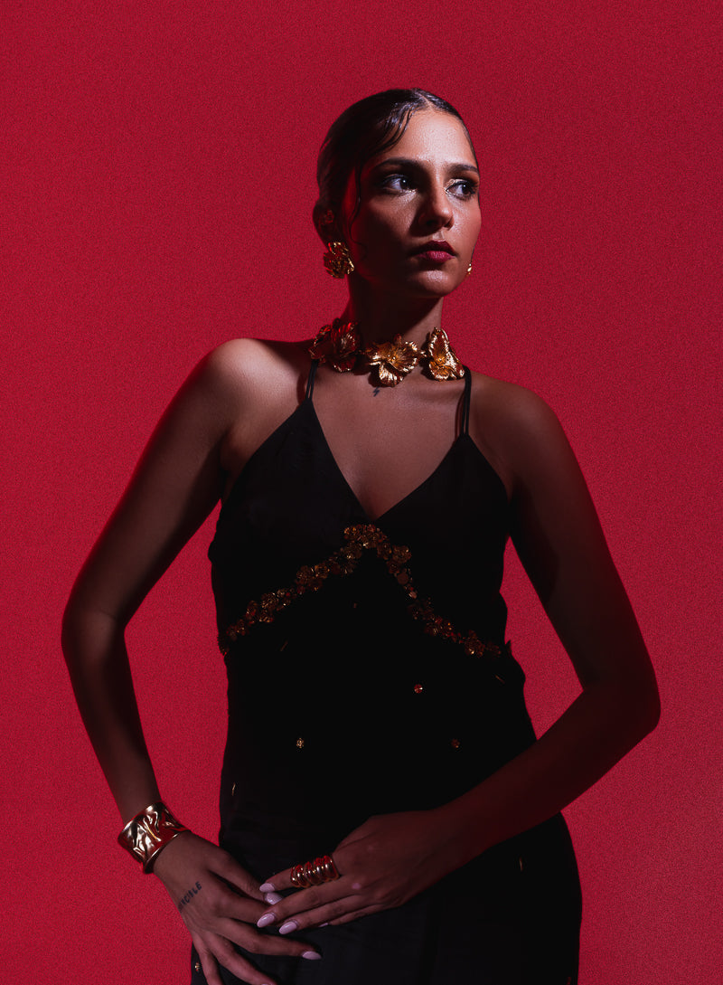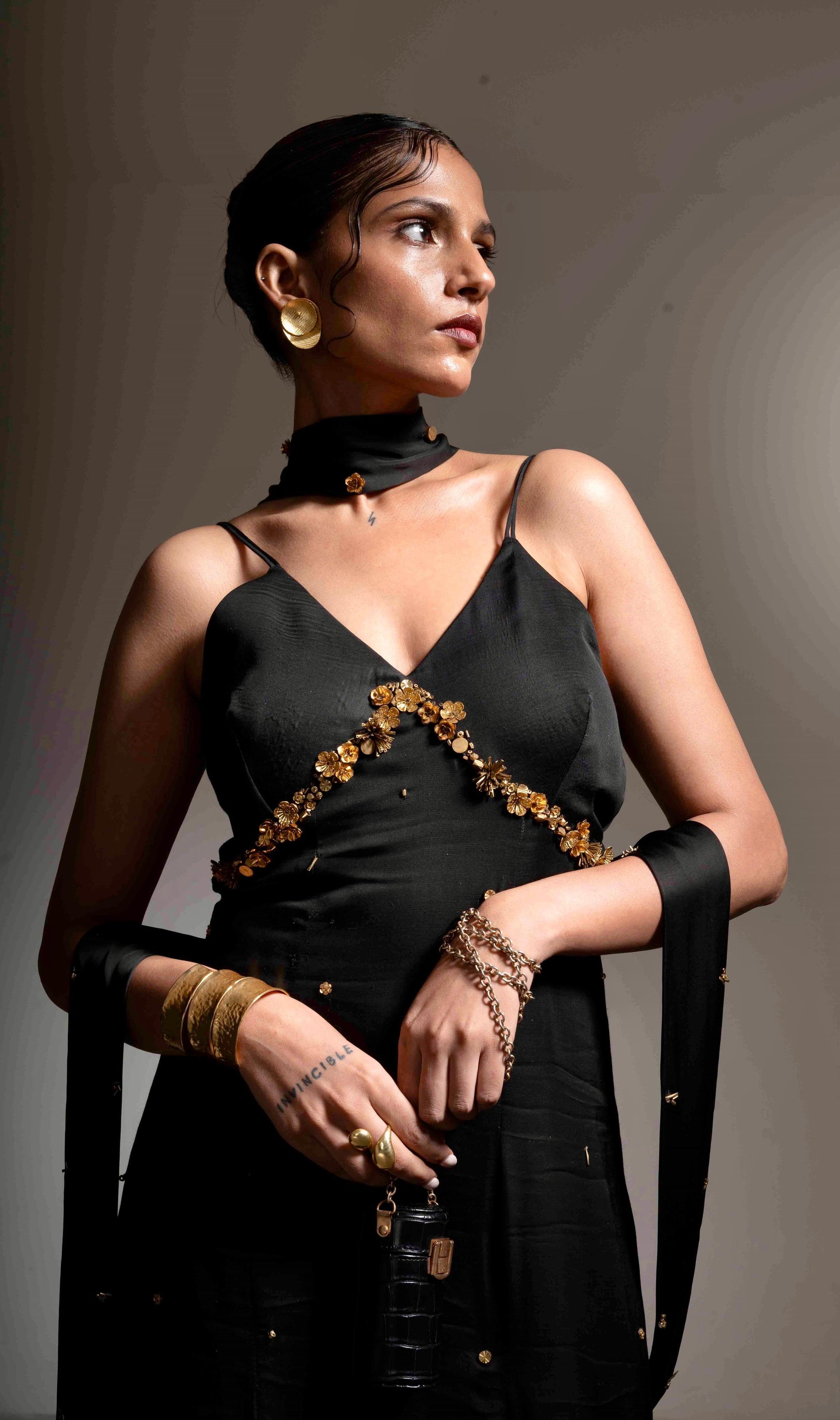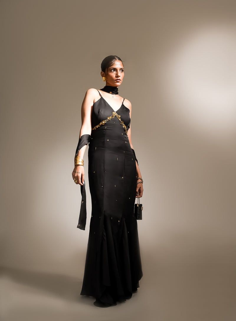 The designer envisions to capture the essence of divinity that embodies this silhouette. This design resonates with the mystique of ancient Egypt, offering a powerful & distinctive presence that truly defines a god like - Aura. Made for style and comfort, this eye turner dress is made to feel give boss lady vibes. Embrace the epitome of effortless elegance and sensuality with its elongated scarf and angular feel. Its heightened activity, and decisive yet playful embellished details makes its irresistible. Just pair your sandals for a chic day look and you are ready to go.