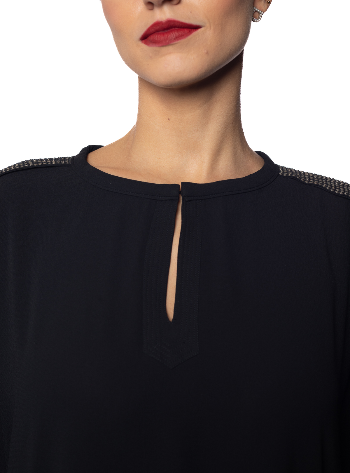 Brighten your wardrobe with this flowy kaftan with cone sequin embellishment on the shoulders. Featuring a relaxed silhouette, soft fabric, and subtle detailing, it's perfect for effortless elegance and vacation vibes.