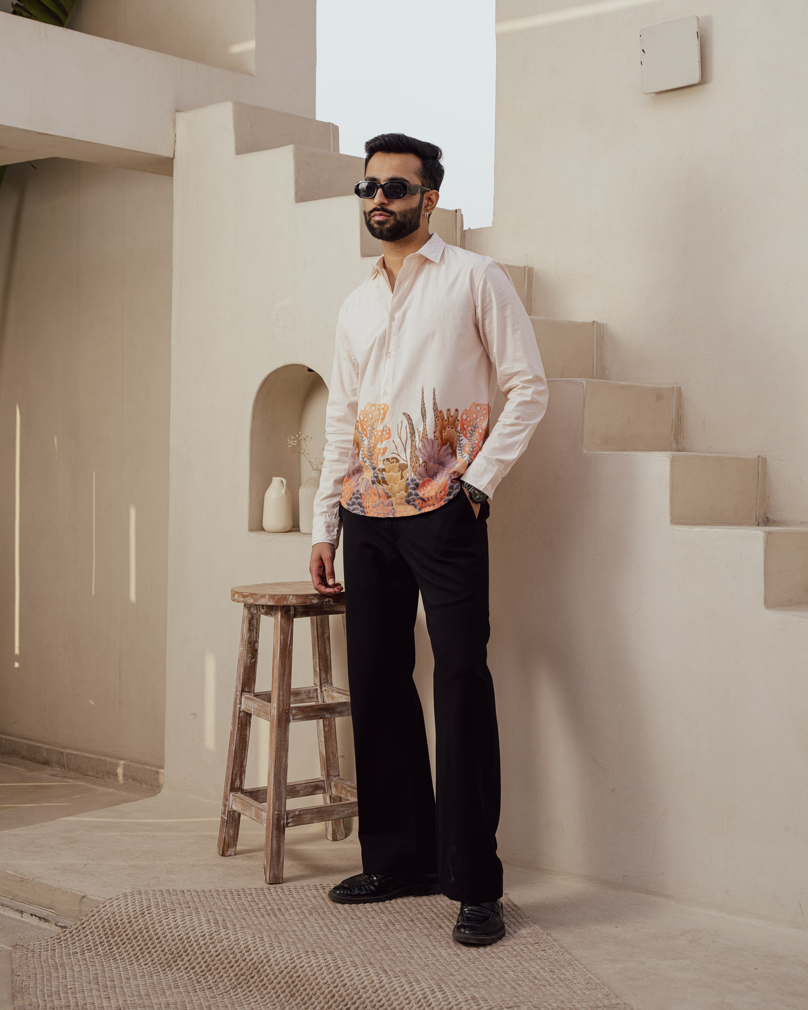 Aquatic Plant Ivory Full Sleeves Cotton Shirt