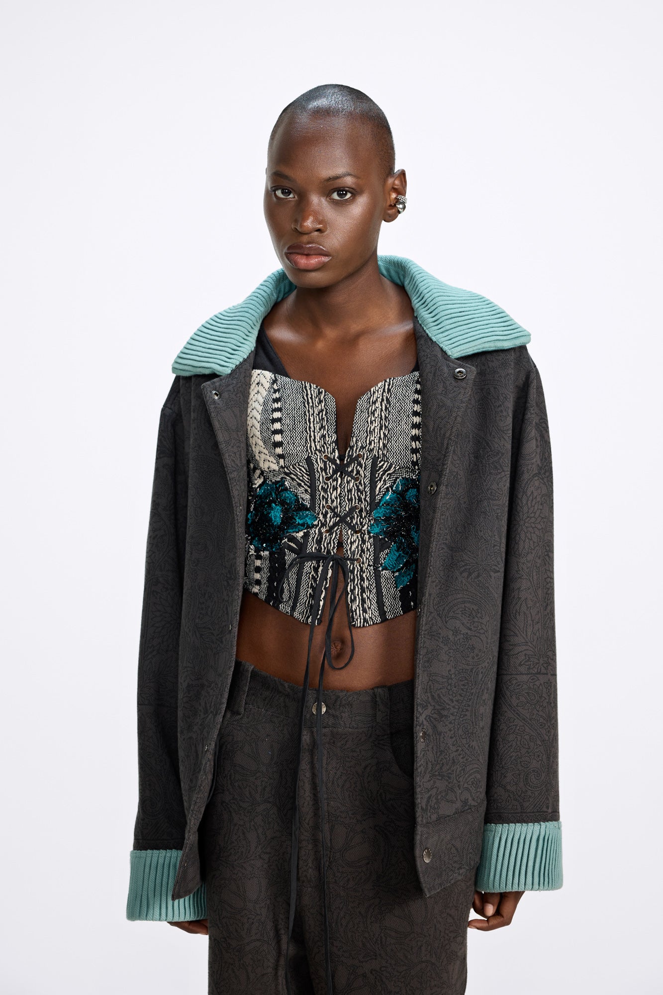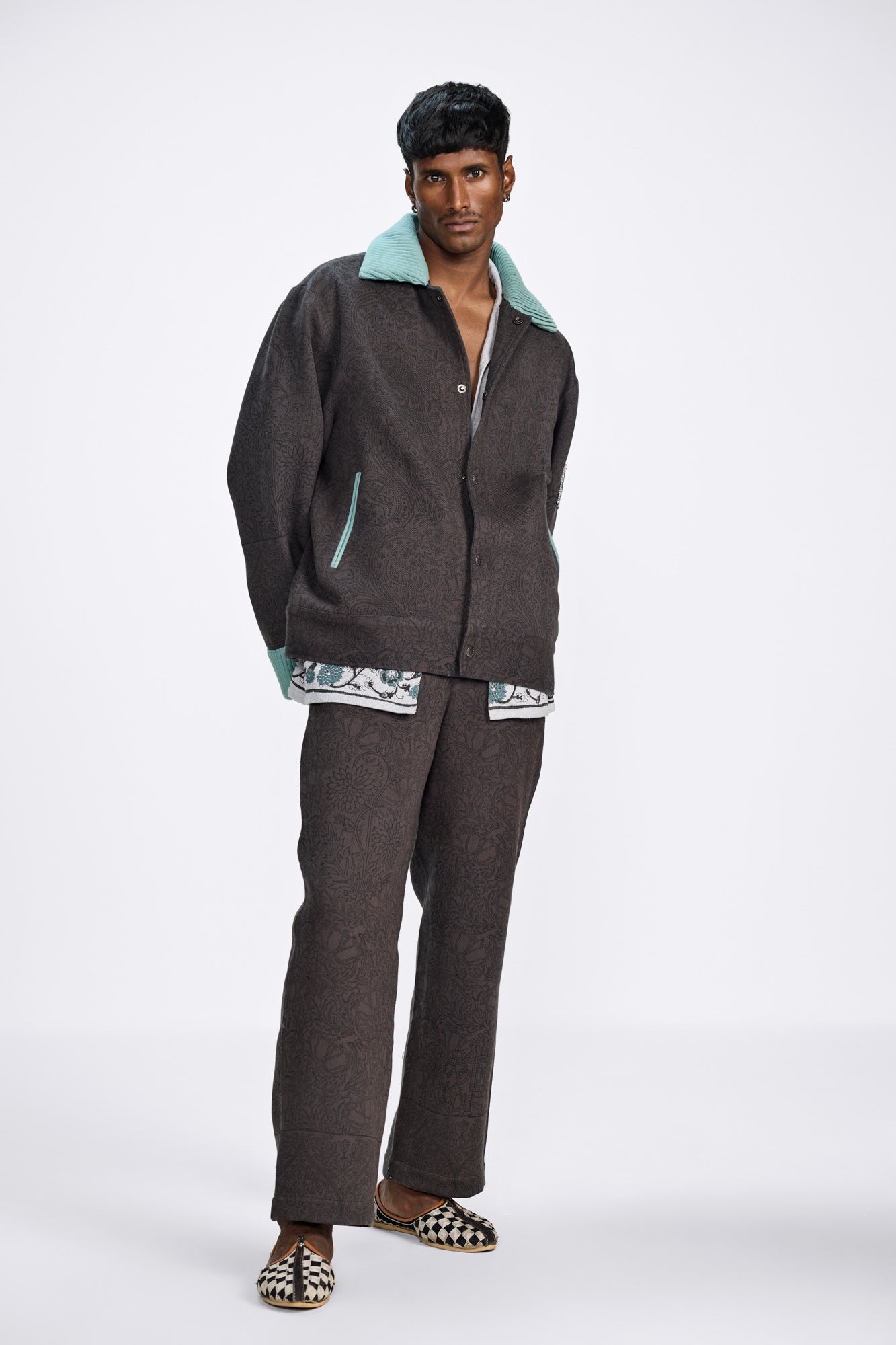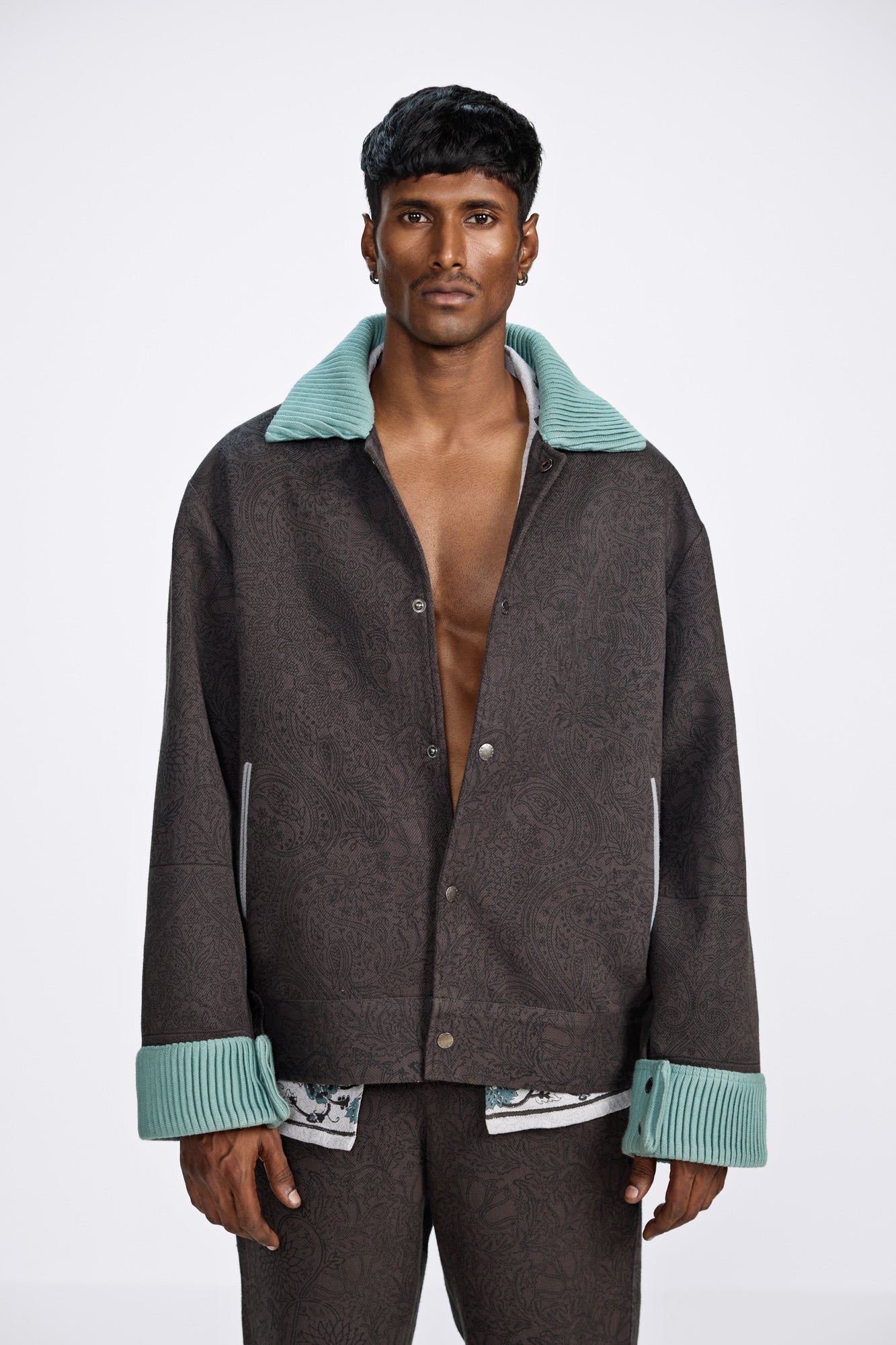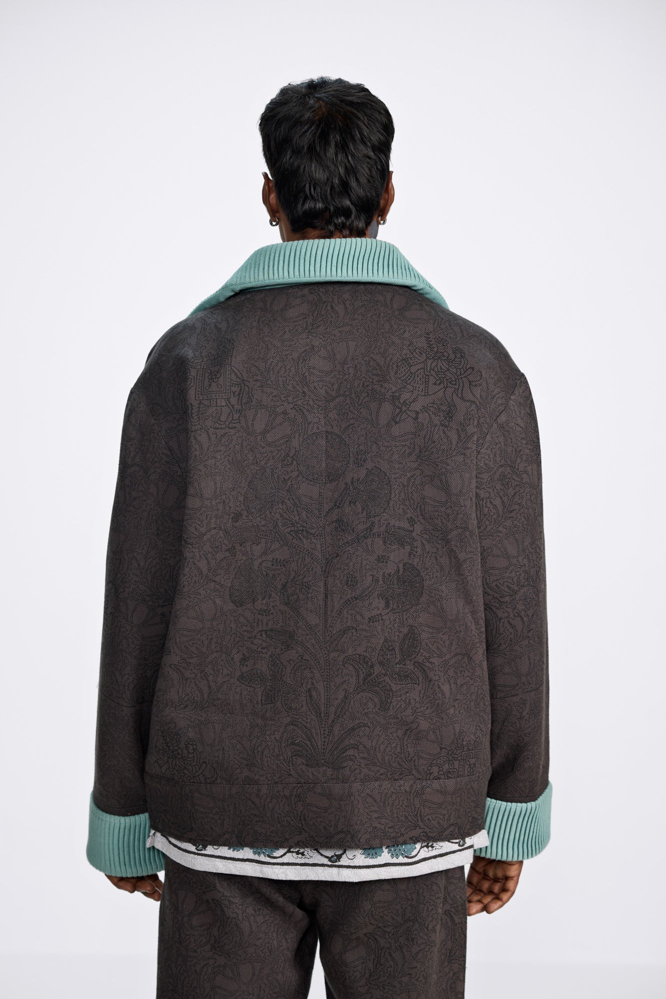 A quiet rebellion wrapped in charcoal and mint, the BASICS Monochrome Jacket is a study in subtle contrast. Handcrafted with precision, its clean lines and structured silhouette are softened by ribbed textures that nod to comfort and ease. The mint accents peek through like moments of calm in chaos, making this piece a wearable pause. Designed to be both grounding and expressive, it reflects Farak’s ethos—where minimalism meets meaning, and every stitch tells a story of intention.