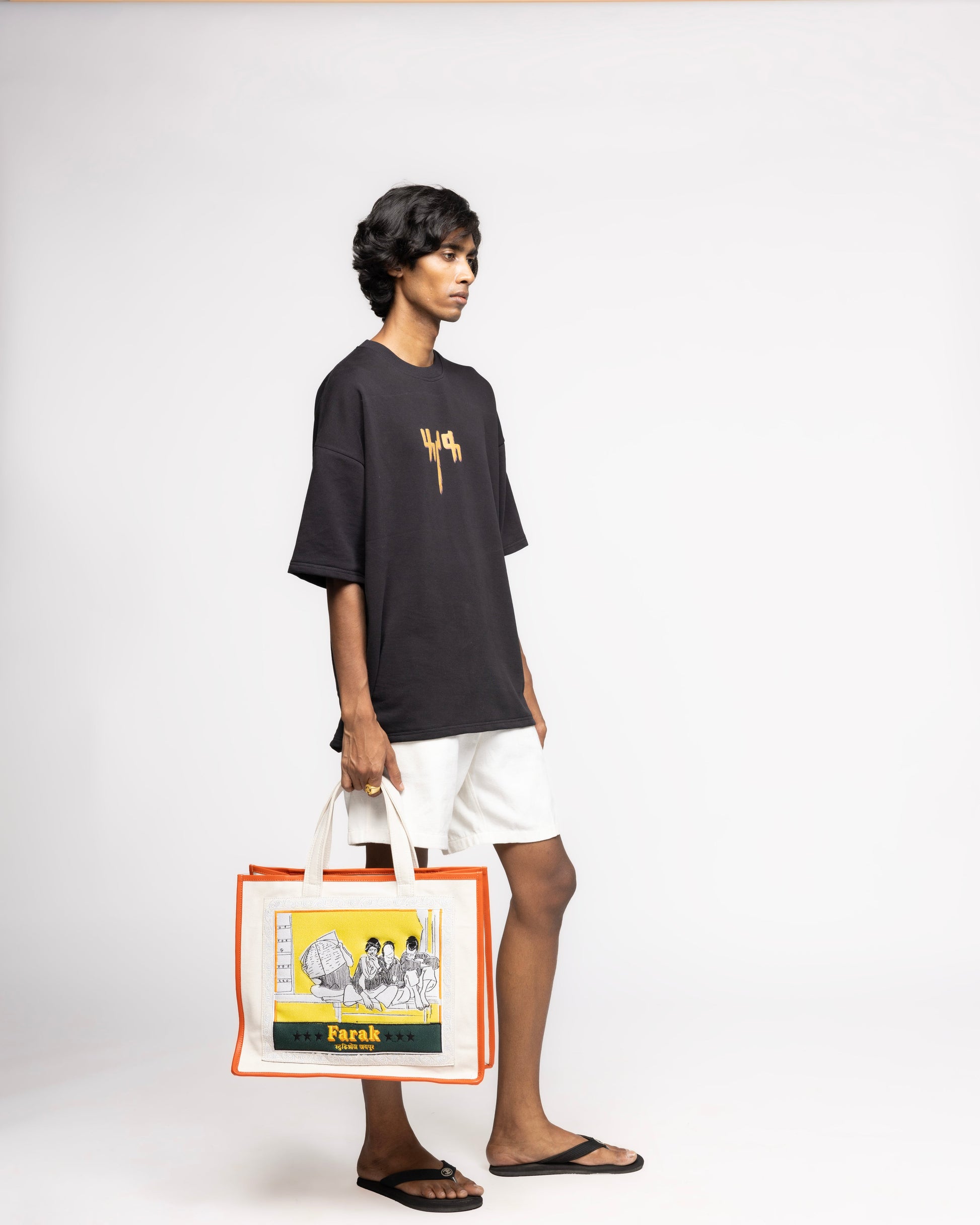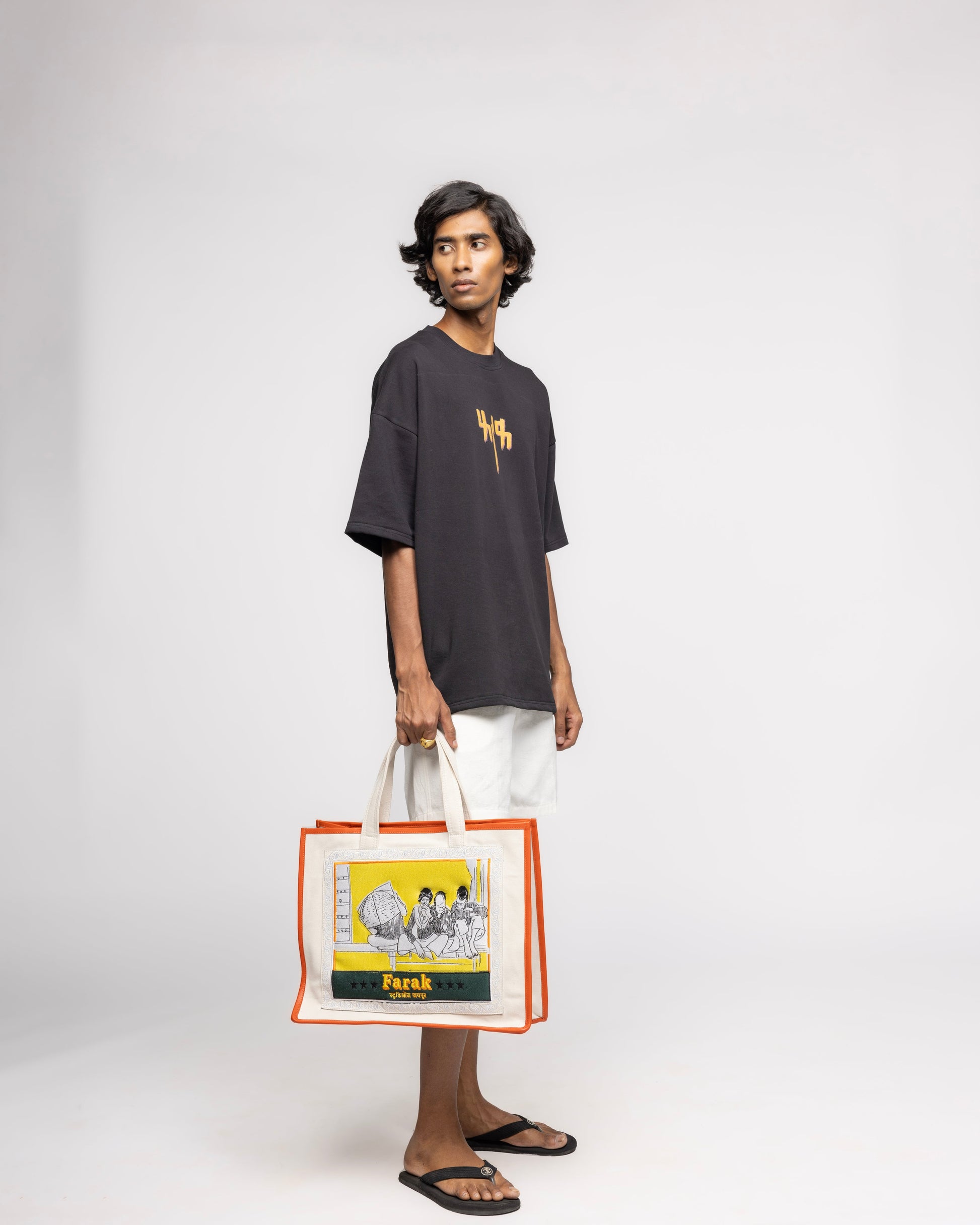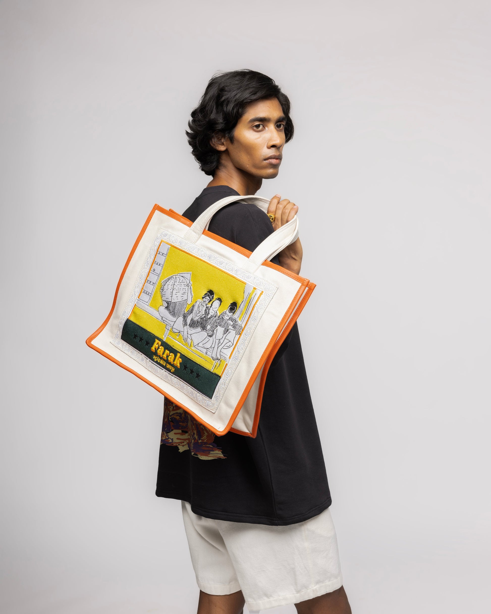 Introducing our Bazaar Bag, a timeless homage to the iconic bag found in every Indian household. Crafted from 100% cotton canvas, this bag embodies the essence of traditional Indian markets and the vibrant spirit of bazaars. Featuring a classic design, the Bazaar Bag is adorned with intricate machine embroidery that adds a touch of elegance and authenticity. The snap buttons ensure secure closure, while the two interior pockets provide ample space for storing your essentials. Embrace the rich cultural heritage of India with our Bazaar Bag, a must-have accessory for every modern-day explorer.