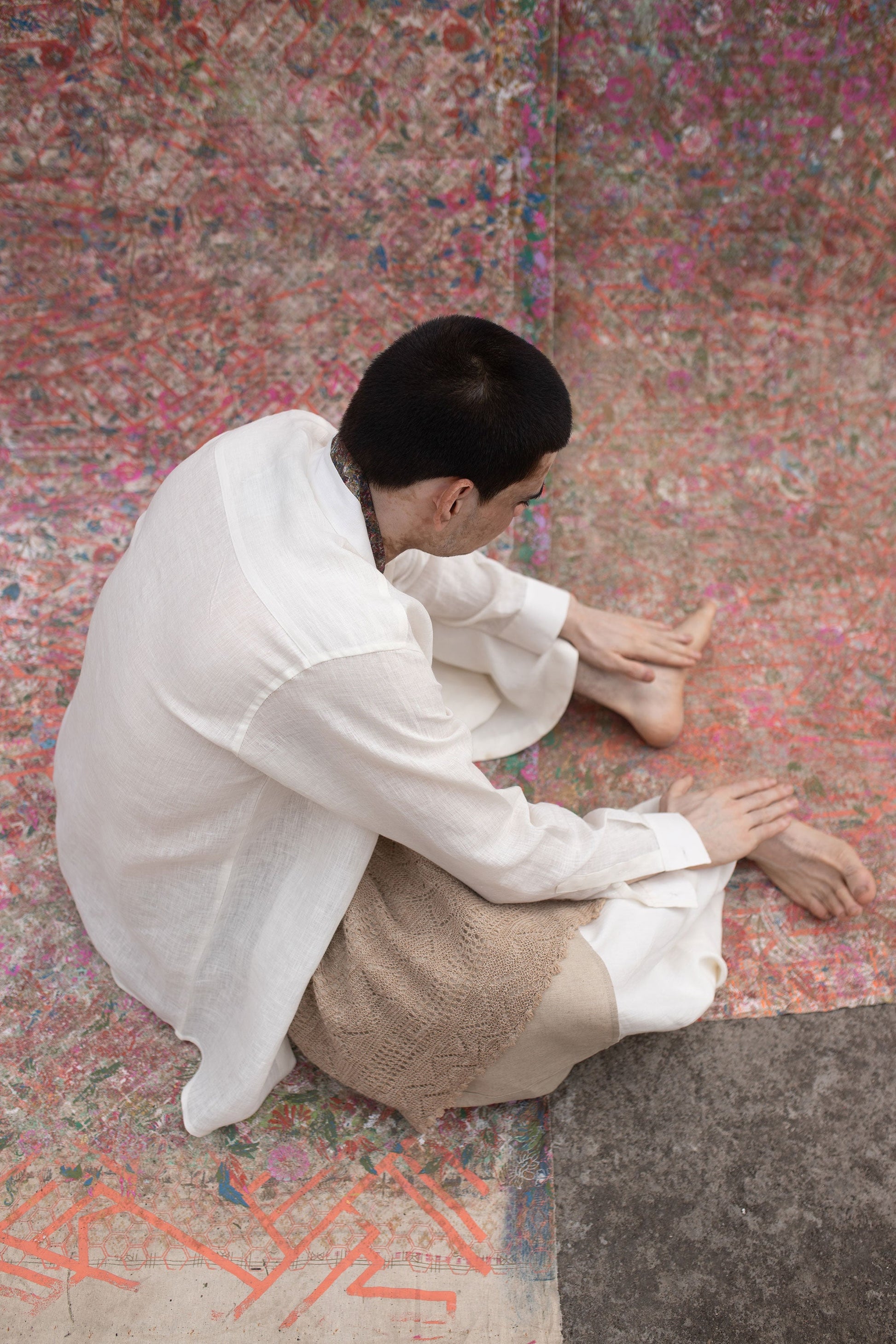 The Patina Collection is created using soft handwoven Bhagalpuri linen. These textiles are highlighted with different geometrical textures and patterns in different colors using recycled hand block print using hand carved traditional wooden blocks from Sanganer.