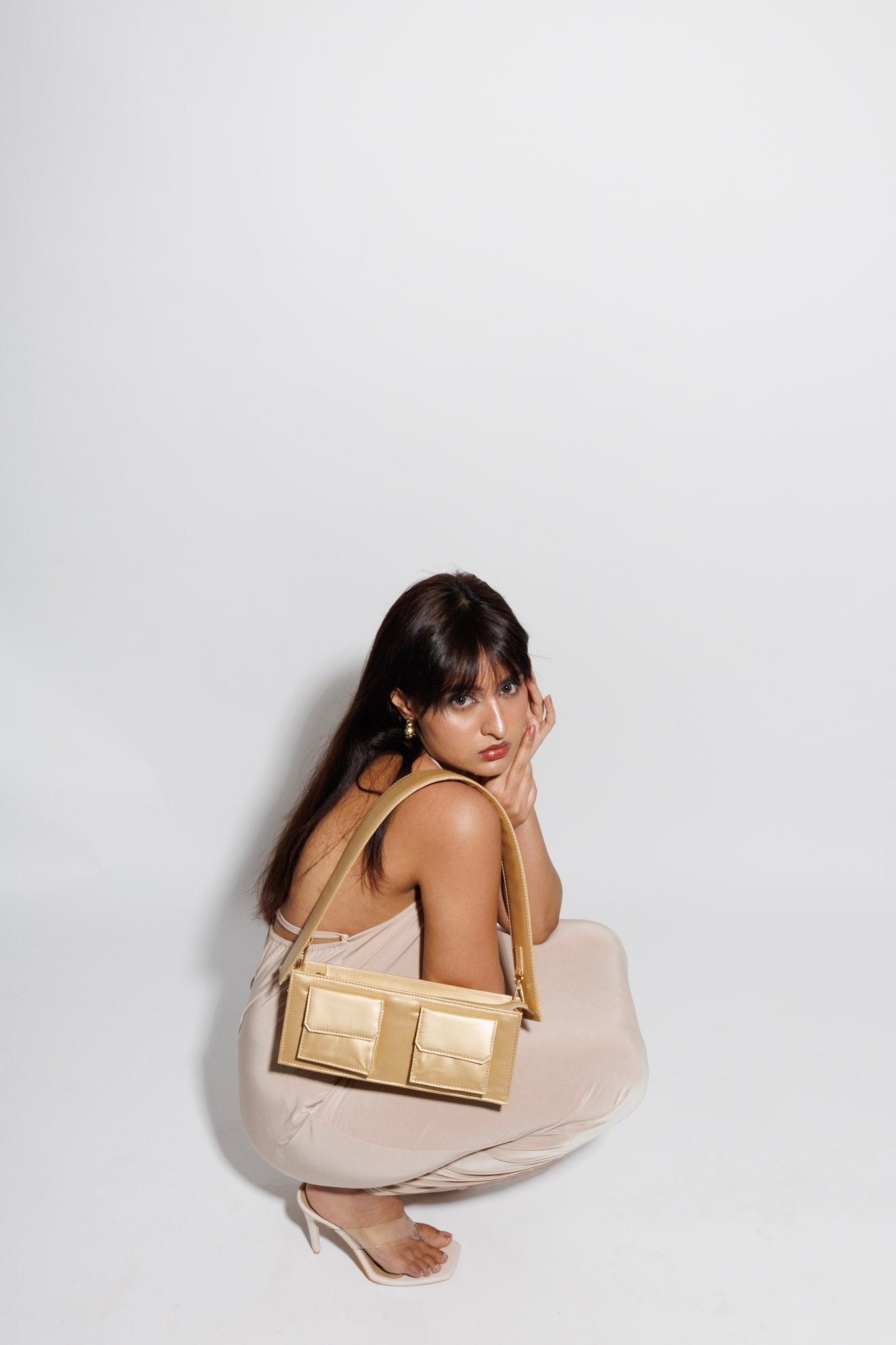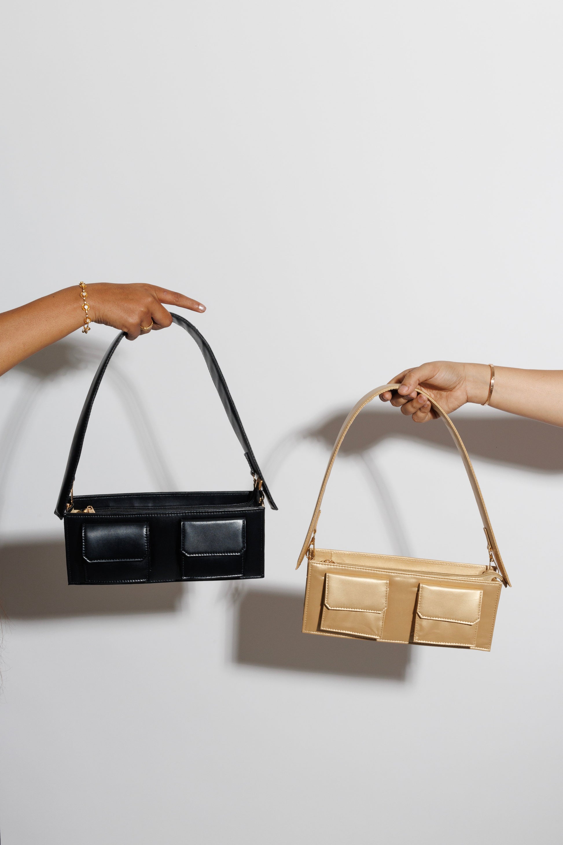 Vegan Leather shoulder bag • Crafted in smooth PU • Structured silhouette • Zip closure • Cotton lining • Two compartments for the essentials