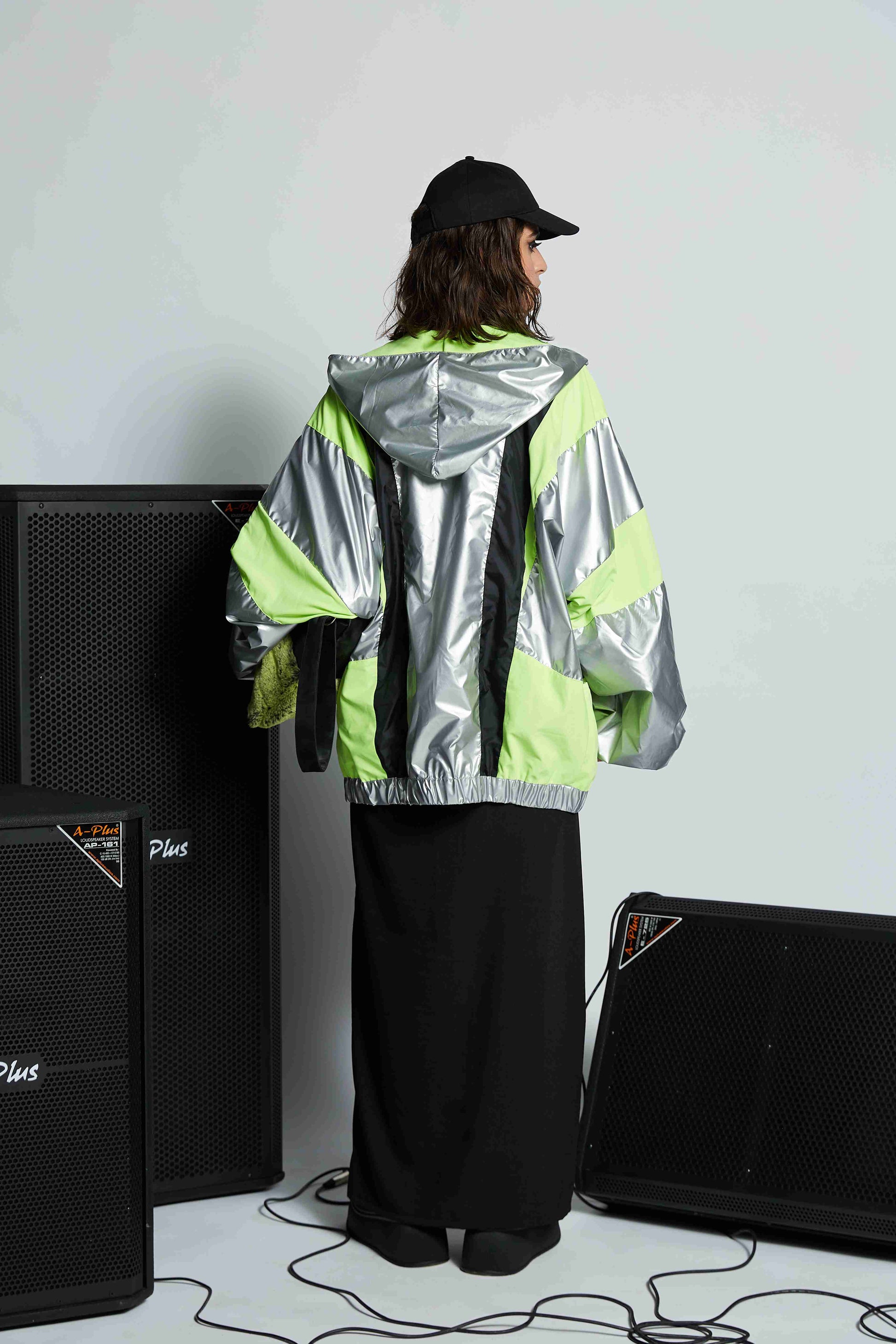 Juxtaposed long skirt with two slits and a low cut waistband detail with side fastening. For a complete set, wear with its matching item.