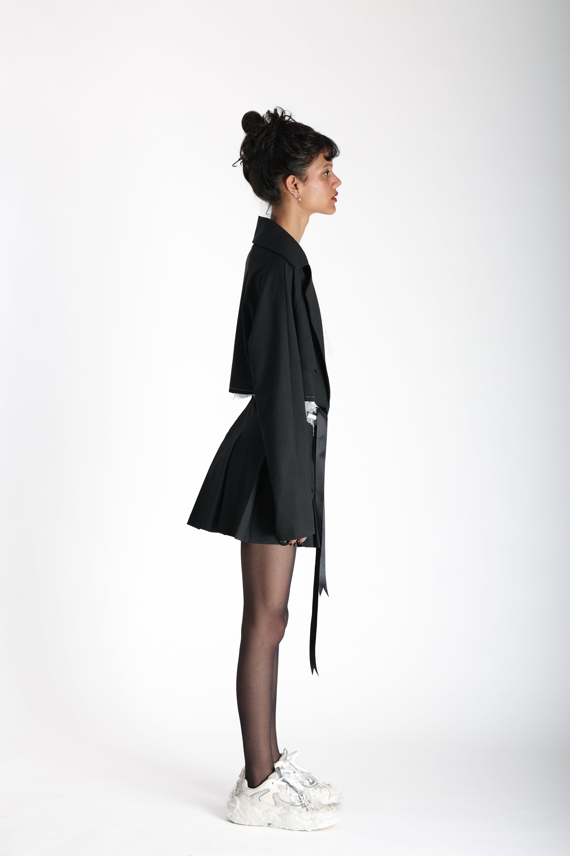 Every girl appreciates a mini skirt that adds a beautiful flair with every turn. What sets this skirt apart is its departure from the typical box pleat design. The broad box pleats, coupled with the thick fabric, ensure that the skirt maintains its shape without the need for frequent ironing. It's a unique blend of style and practicality, offering both a distinctive look and ease of maintenance.