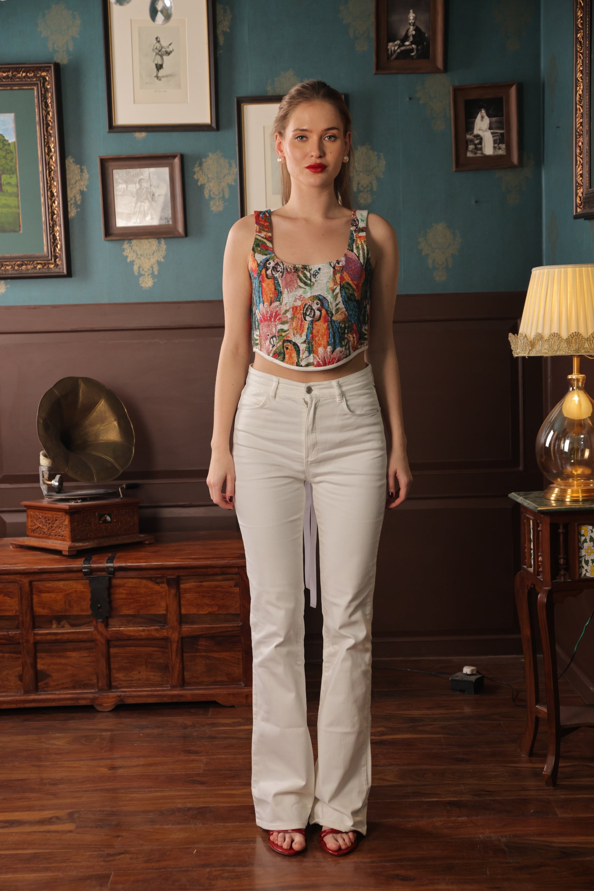 Add a vibrant touch to your wardrobe with this statement corset top. Featuring a bold, artistic print, structured fit, and flattering square neckline, this piece effortlessly blends elegance with modern edge. Perfect for pairing with jeans or skirts, it’s a must-have for a chic, fashion-forward look.