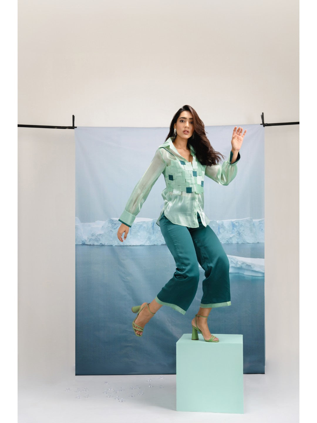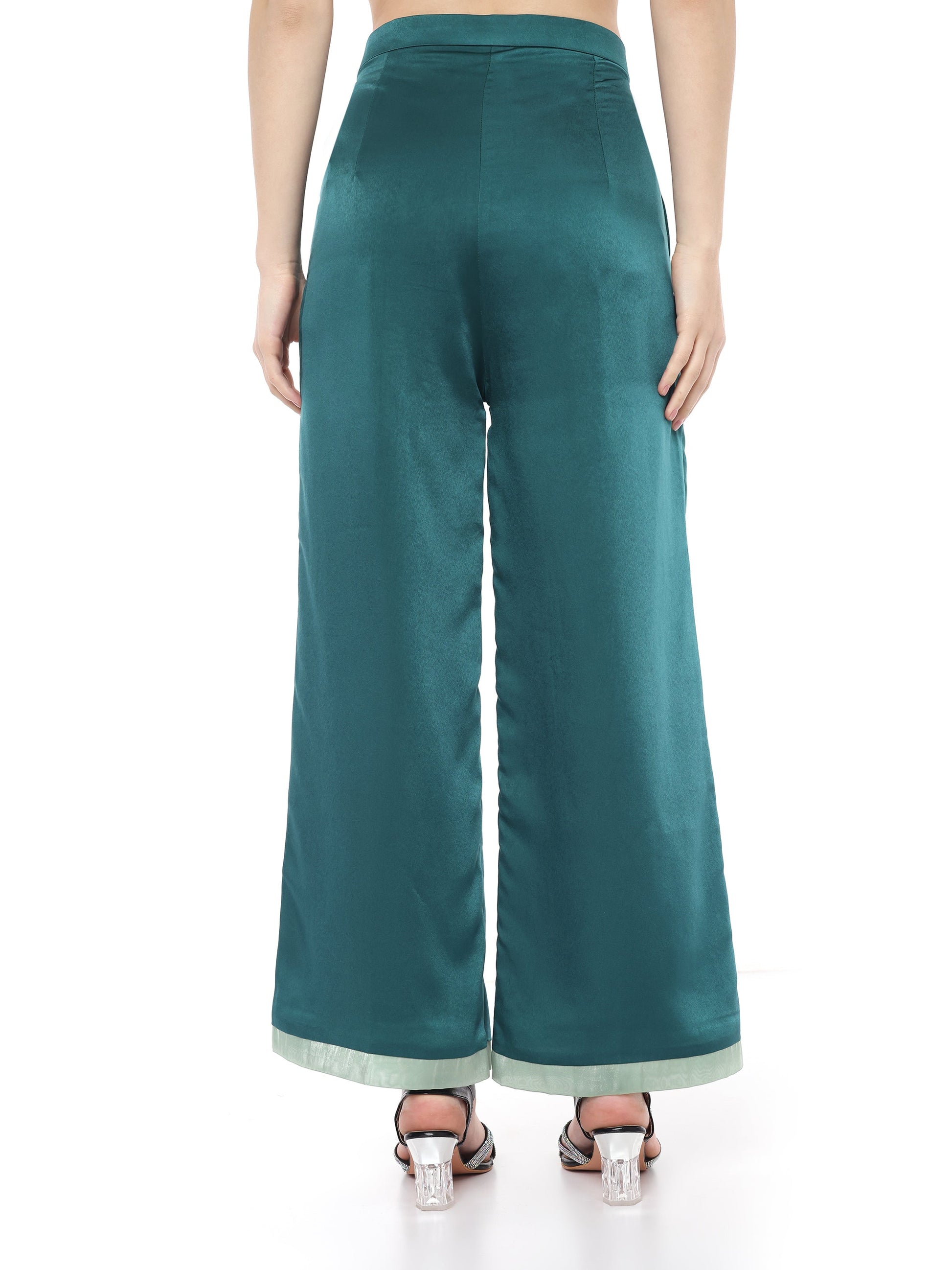 Our high waist pants are accentuated by a striking contrast organza panel at the hem.