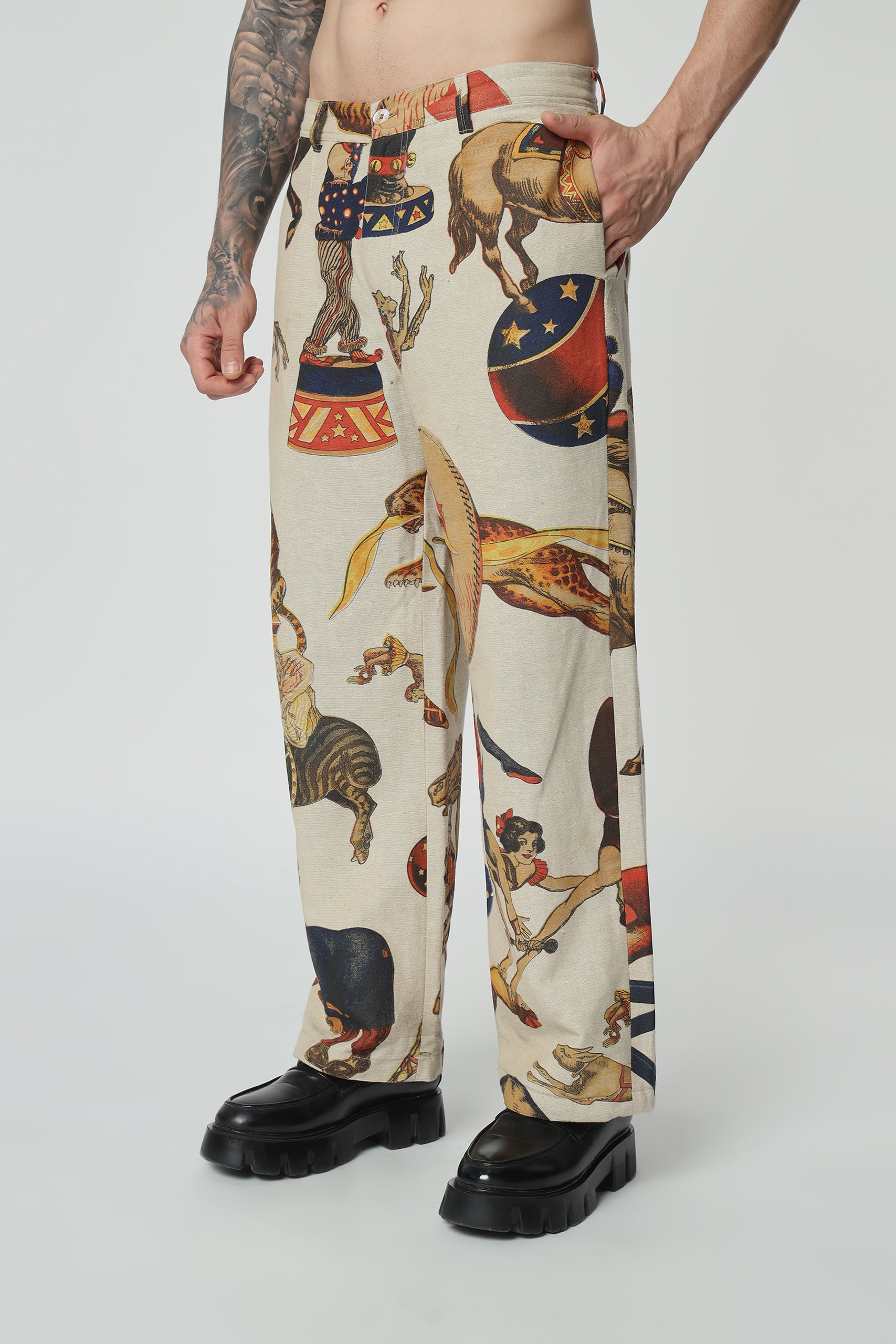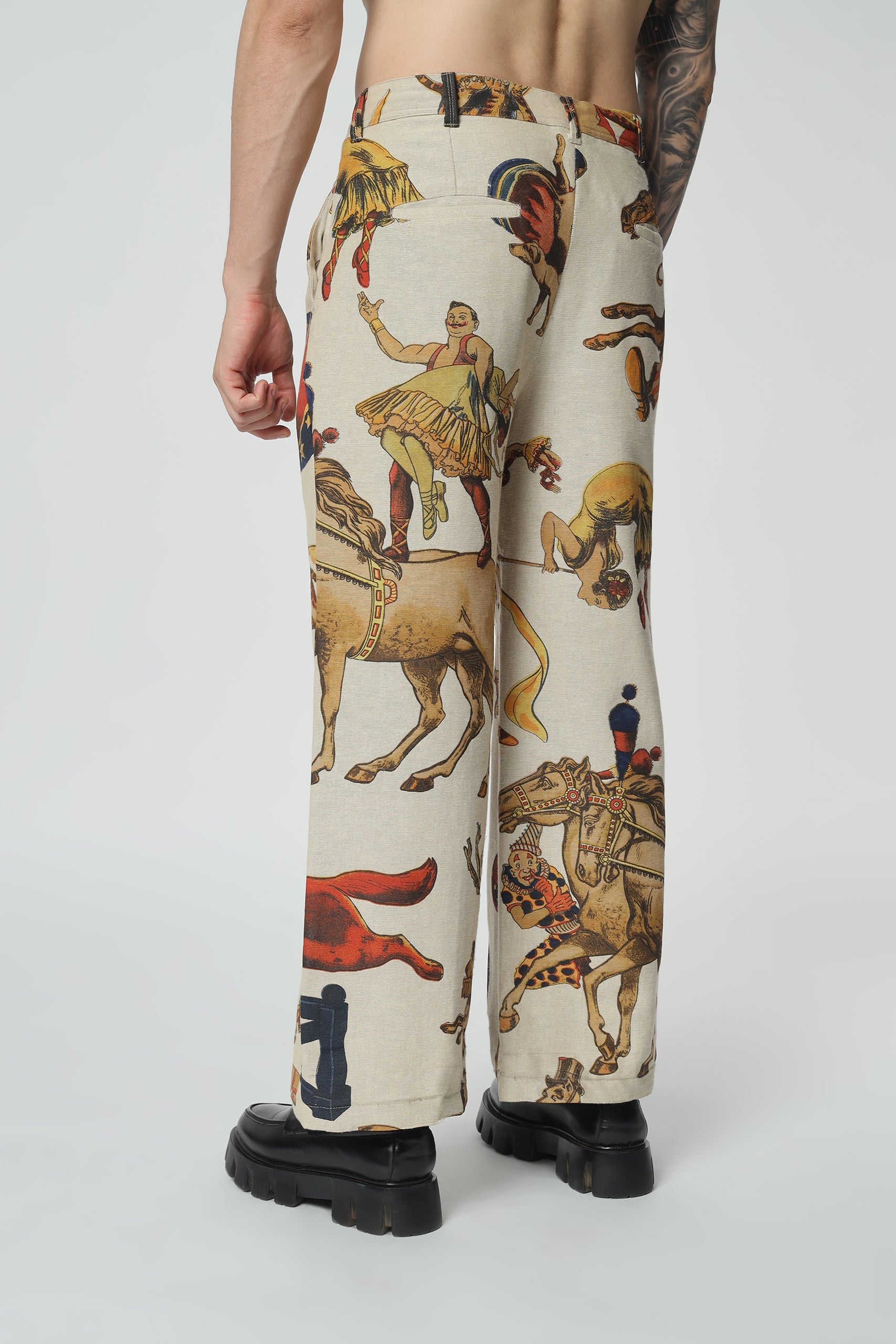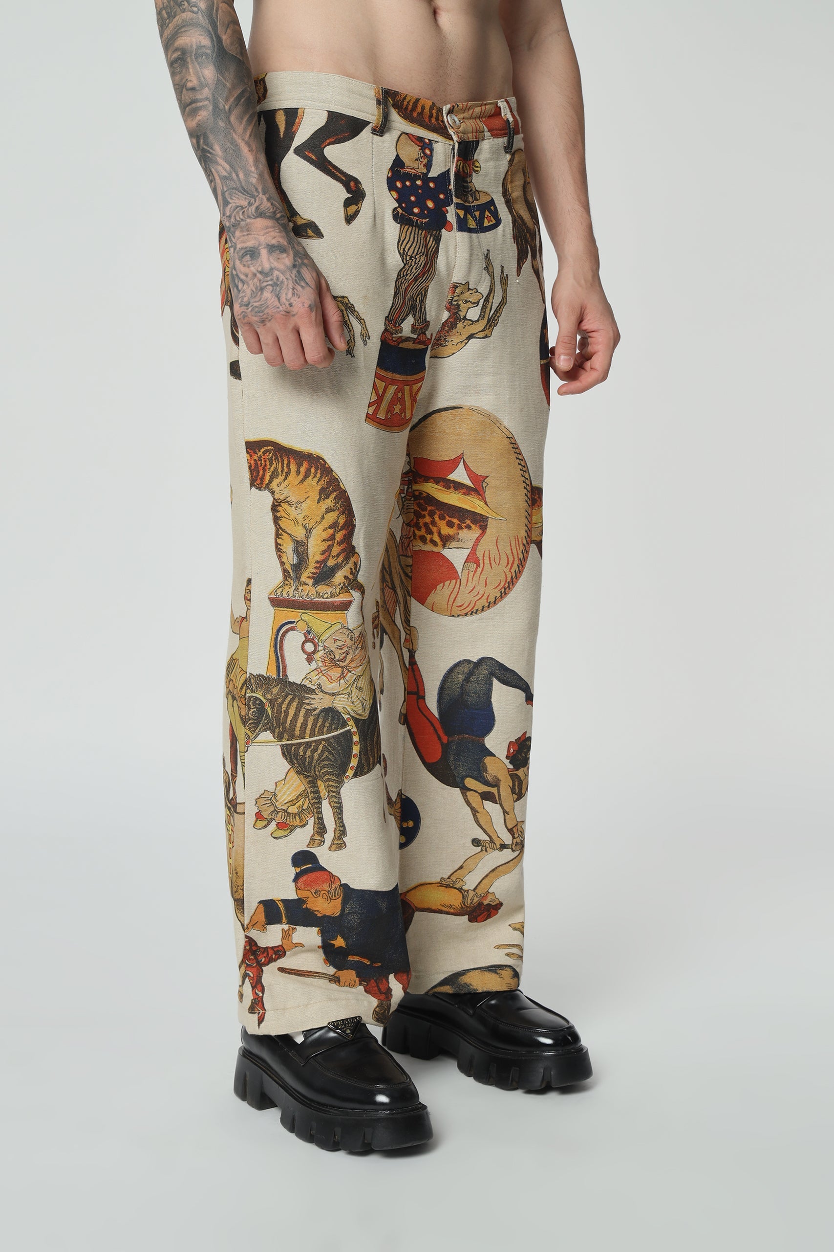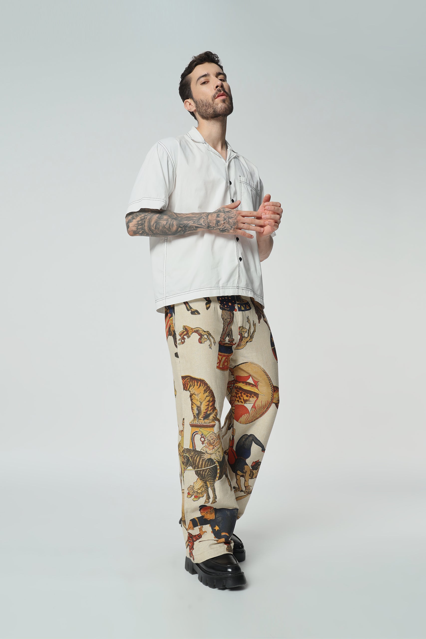 Cotton khadi pants inspired by circus, featuring a relaxed fit and finished with a shell button closure, offer a perfect balance of comfort, style & artisanal charm.
