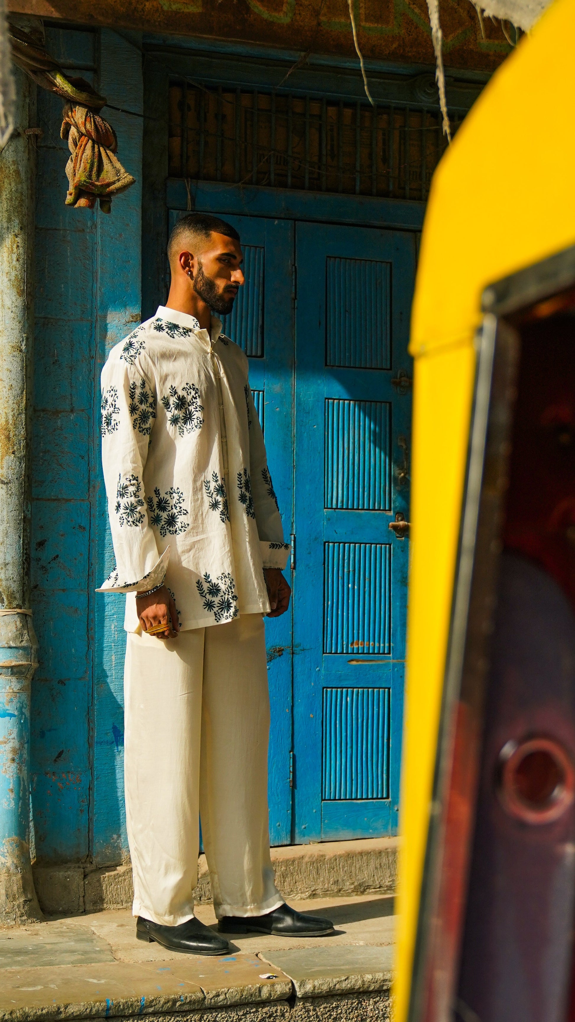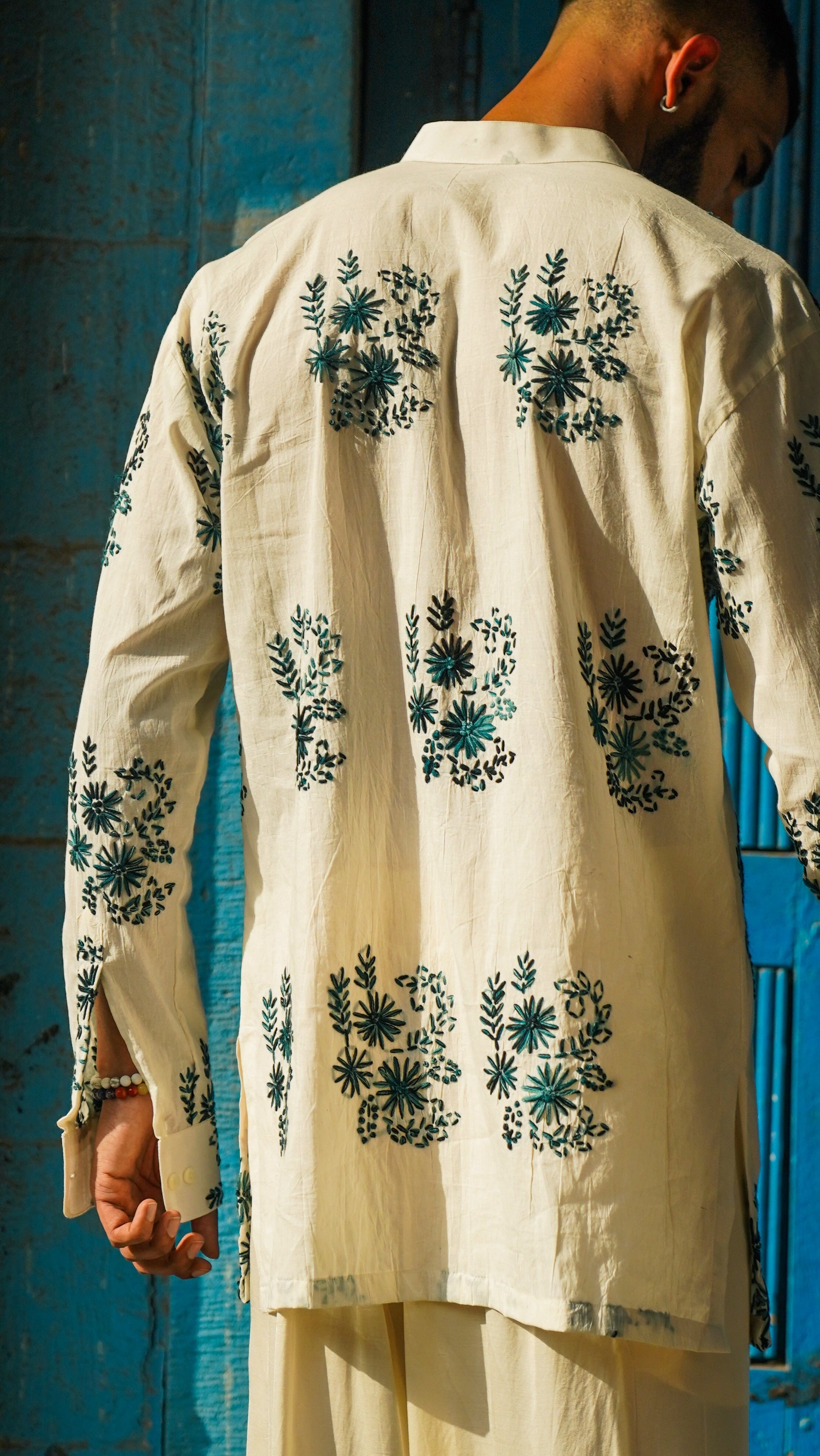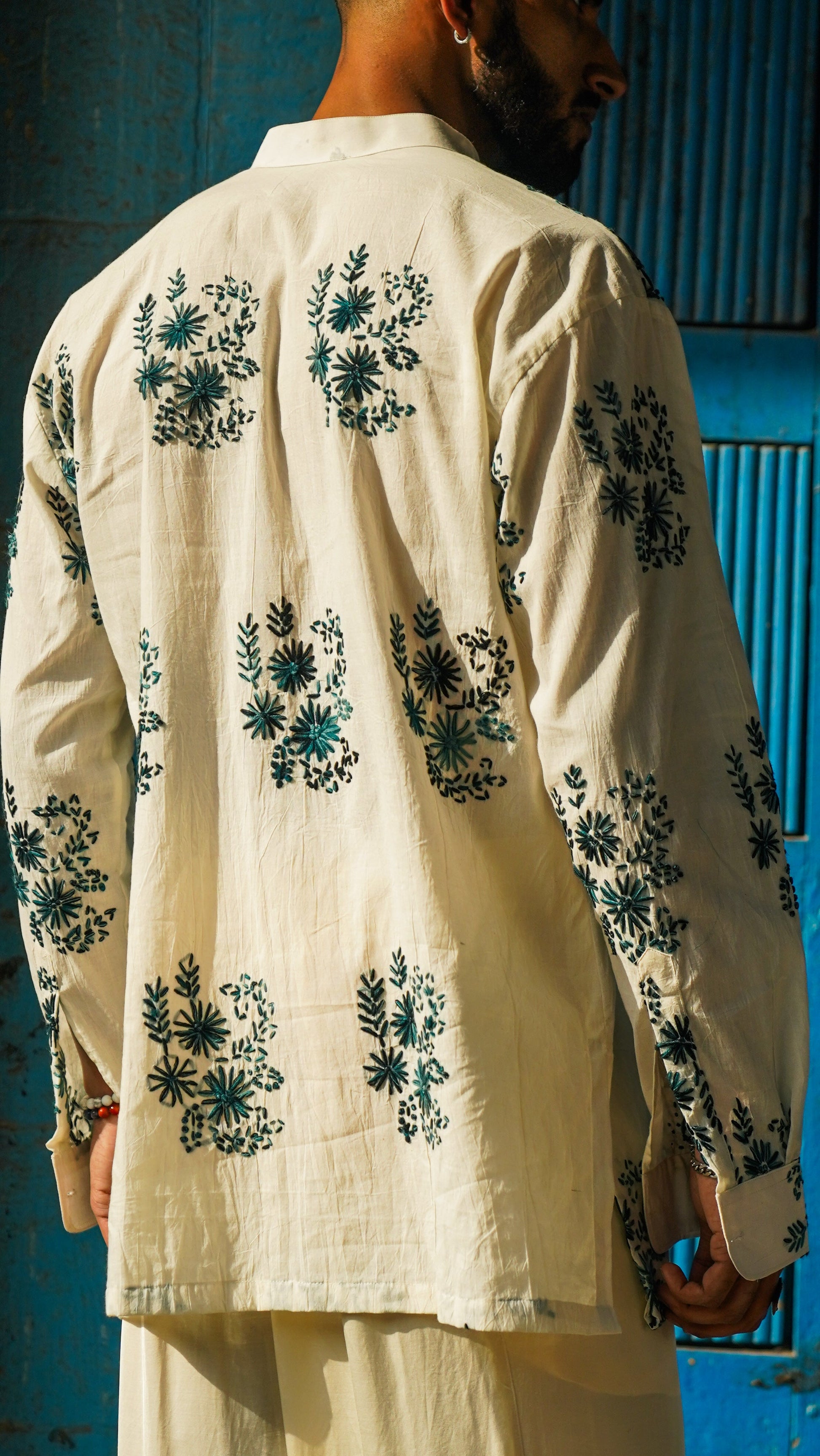 Add some festive flair to your wardrobe with the CHAKRI KURTA! This quirky kurta features full sleeves and loop buttons, along with beautiful Kantha work that adds a unique touch to the design. Perfect for any occasion, this kurta is a must-have for those who love to stand out from the crowd.