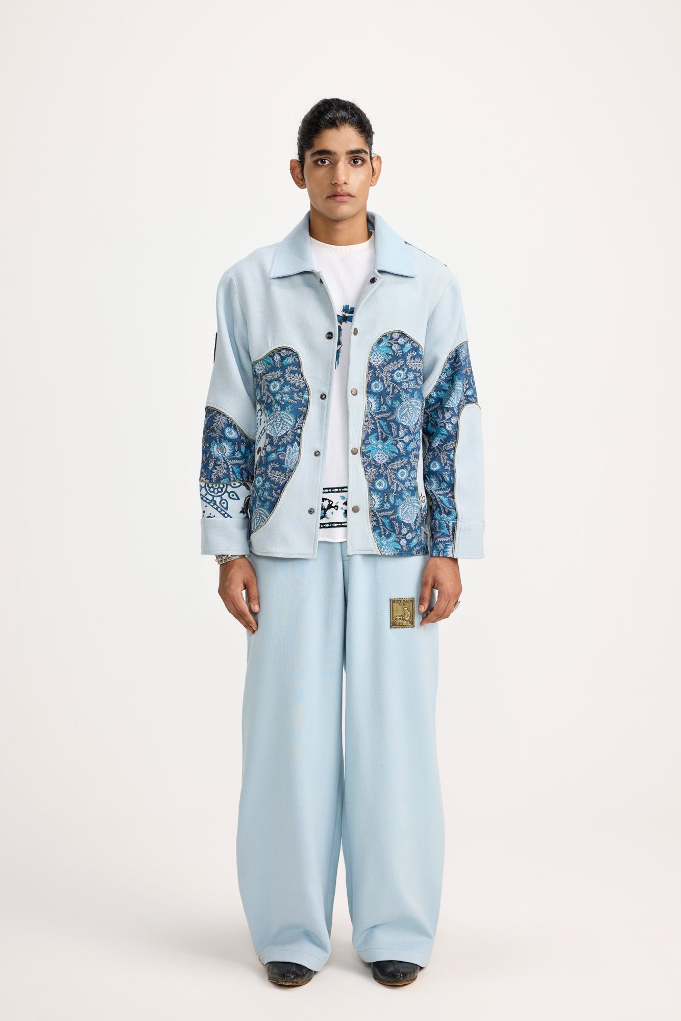 The Closure Handmade Jacket embodies the journey of acceptance and healing, where chaos and confusion finally give way to clarity. Each stitch tells the story of a person who has navigated the depths of irrationality and negative thoughts, only to emerge with a sense of closure. This emotional narrative is woven into the fabric, quite literally. Handwoven by fourth-generation artisan Pramod ji and block printed by Pankaj Sonawa ji, this jacket is entirely crafted by hand, with zero electricity consumed in the process. The zipper-teeth patchwork along the edges reflects the tension and eventual release of inner turmoil, while the raw finish symbolizes the beauty of a journey toward peace. The craftsmanship behind this piece honours traditional methods, yet it carries a deeply modern story of resilience, self-acceptance, and healing.