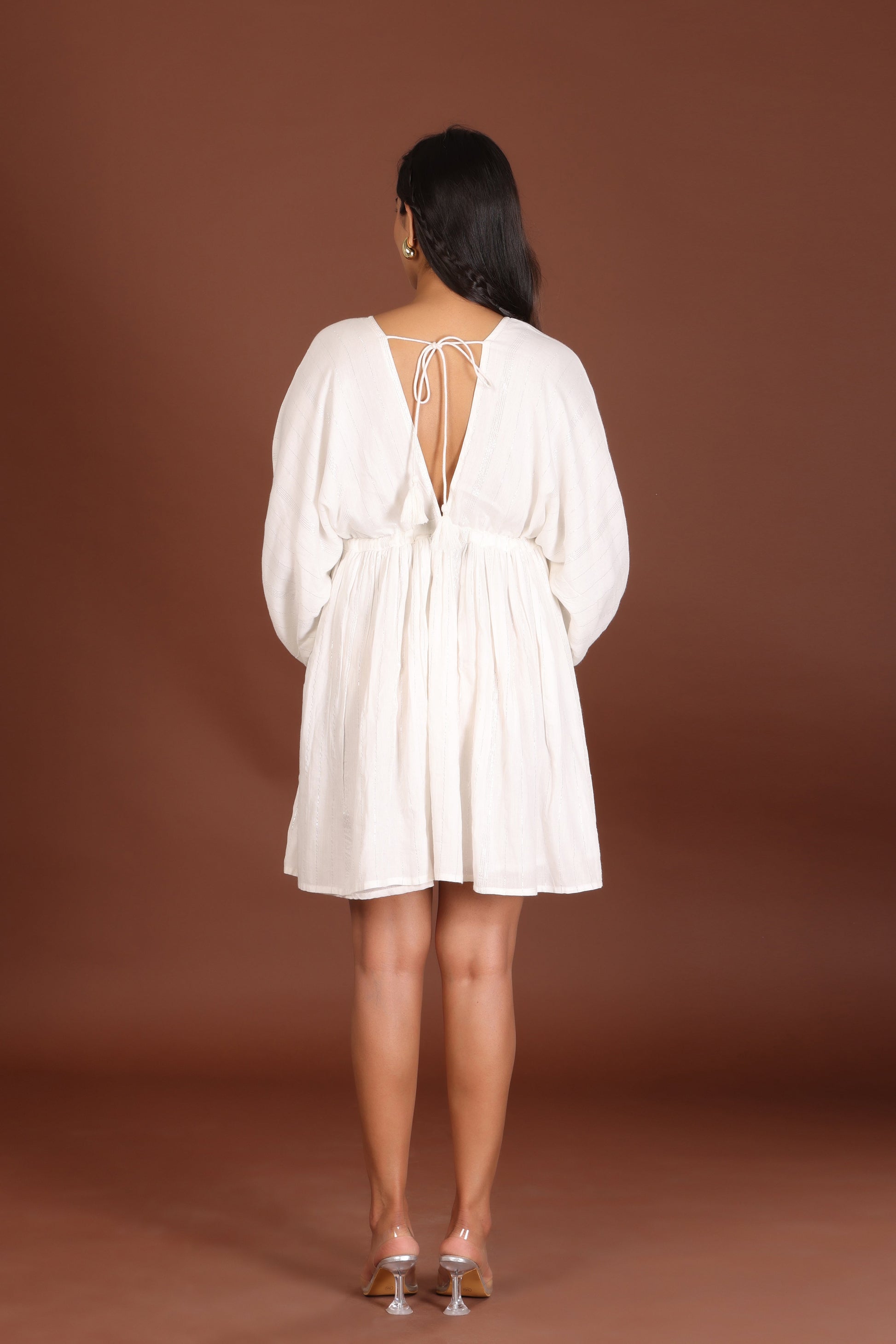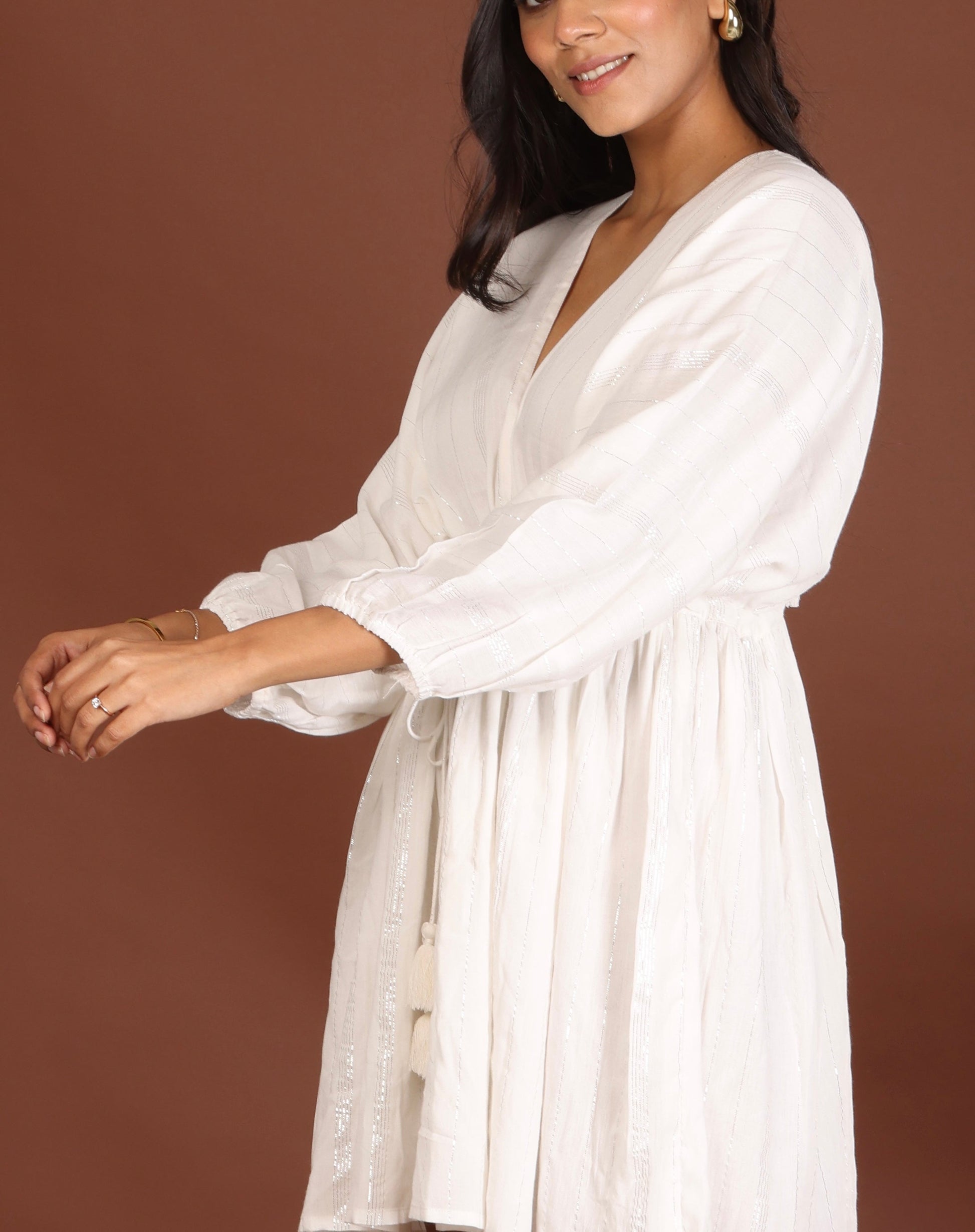 STYLING TIP-Embrace the simplicity of summer by pairing this White lurex crepe dress with a pair of statement heels or flats for a boho party look.