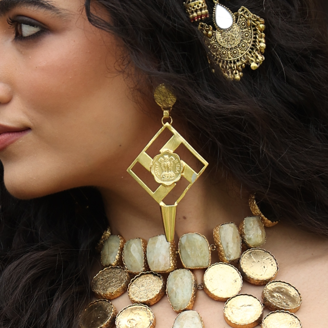 OLD COIN IN BRASS METAL WITH 18KT GOLD PLATING
