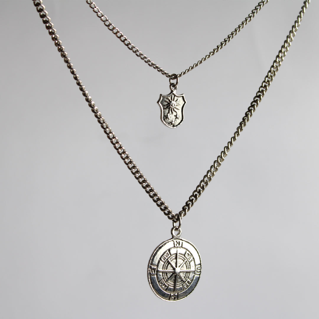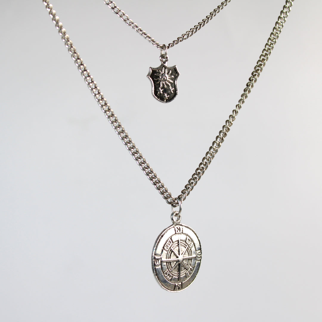 Experience ultimate elegance with our Compass Necklace. Featuring a double layer design and stunning silver color, this necklace is perfect for any occasion. With its delicate compass charm, it's a beautiful reminder to always follow your true north. Add it to your jewelry collection today.