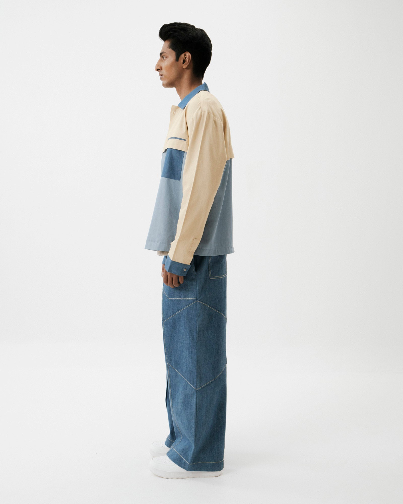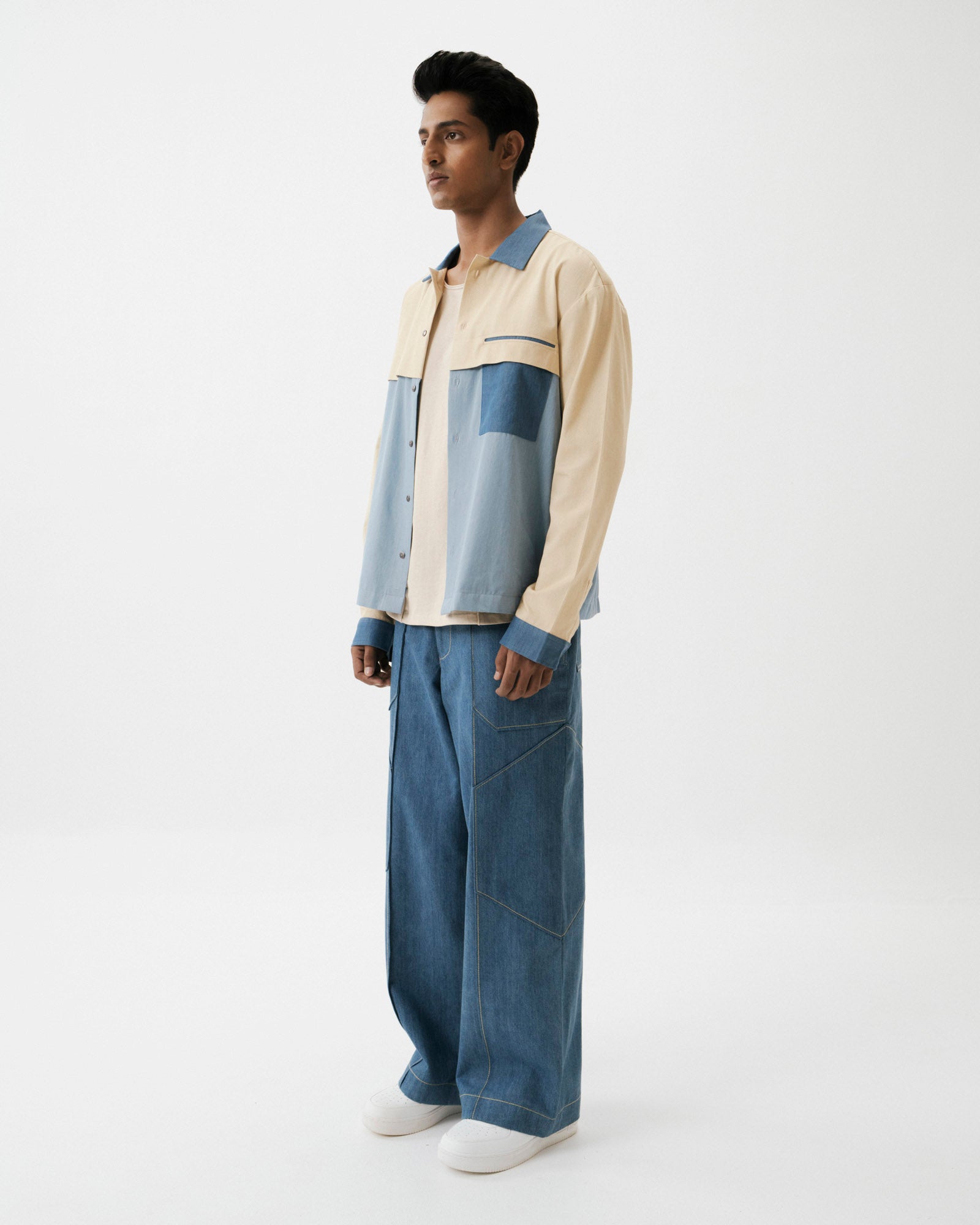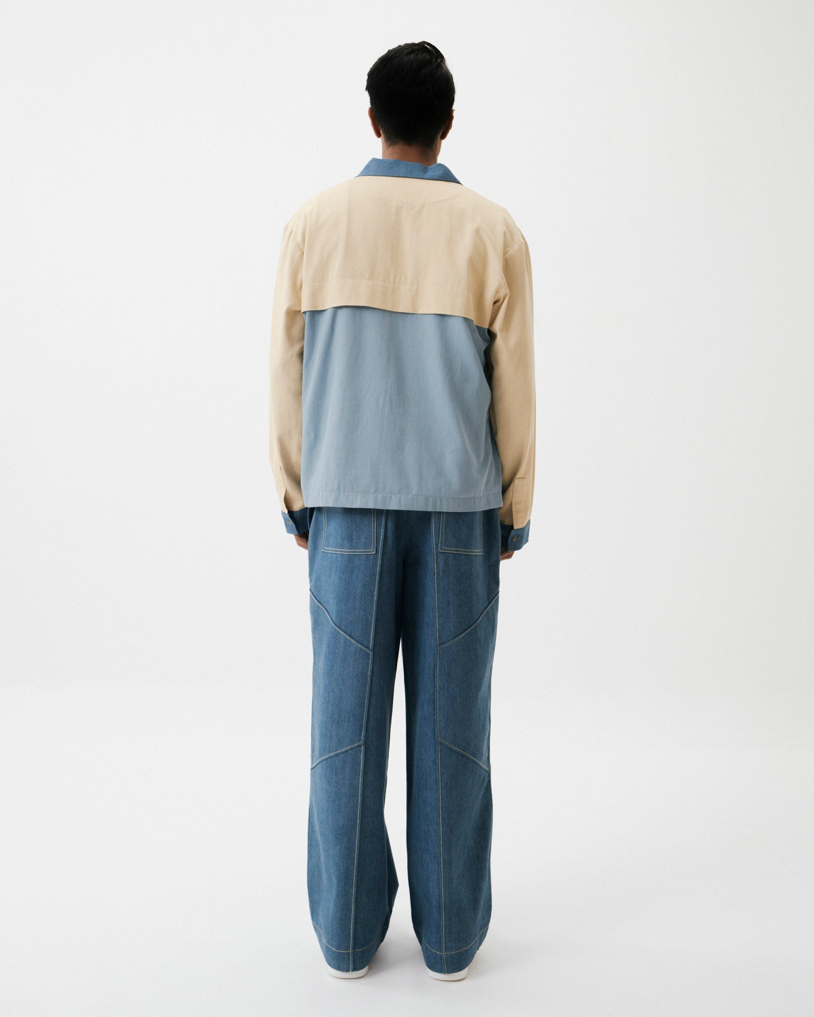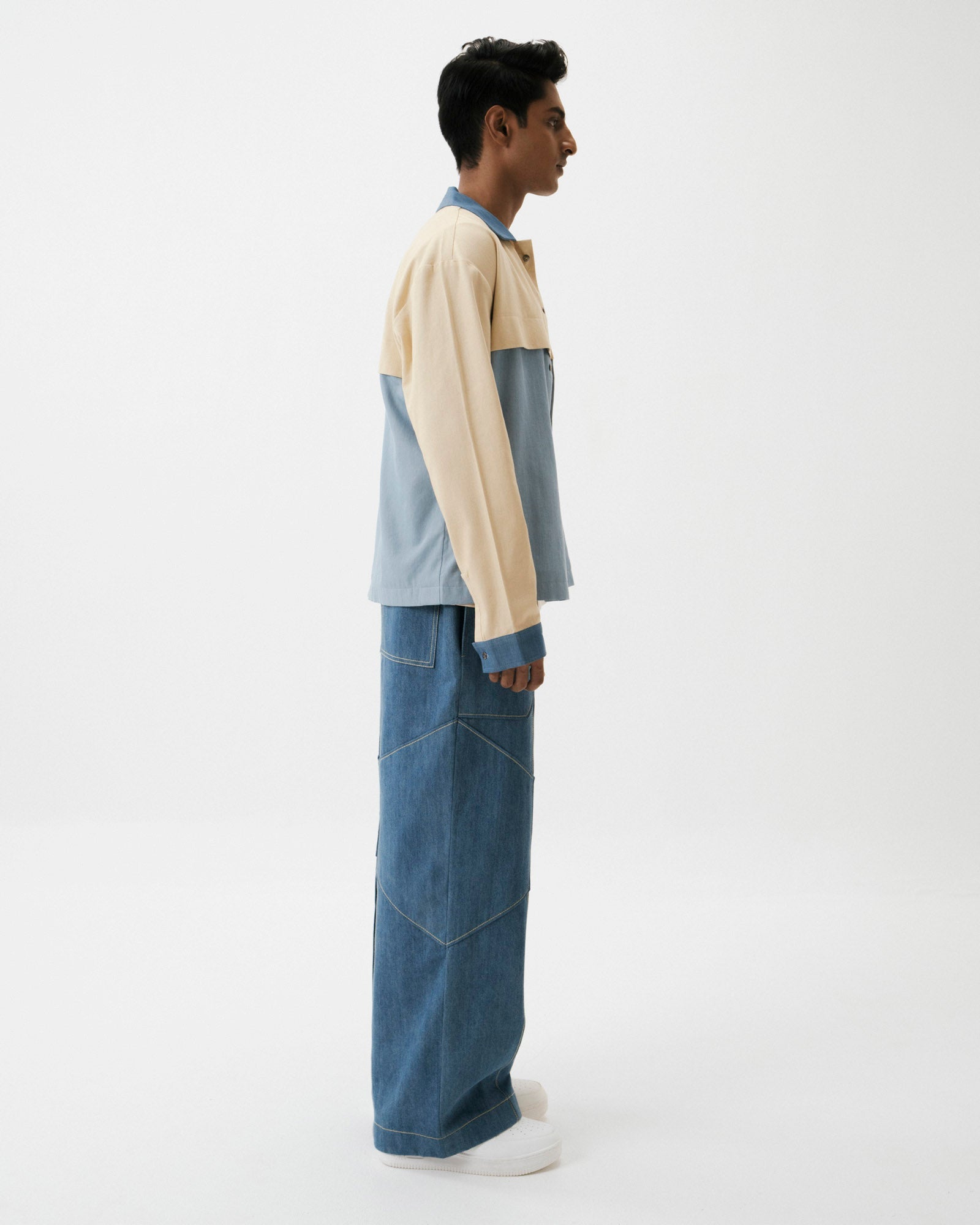 concealed waist line - front fly closure - front side pocket - back patch pocket - structured panel detail - oversized pant leg