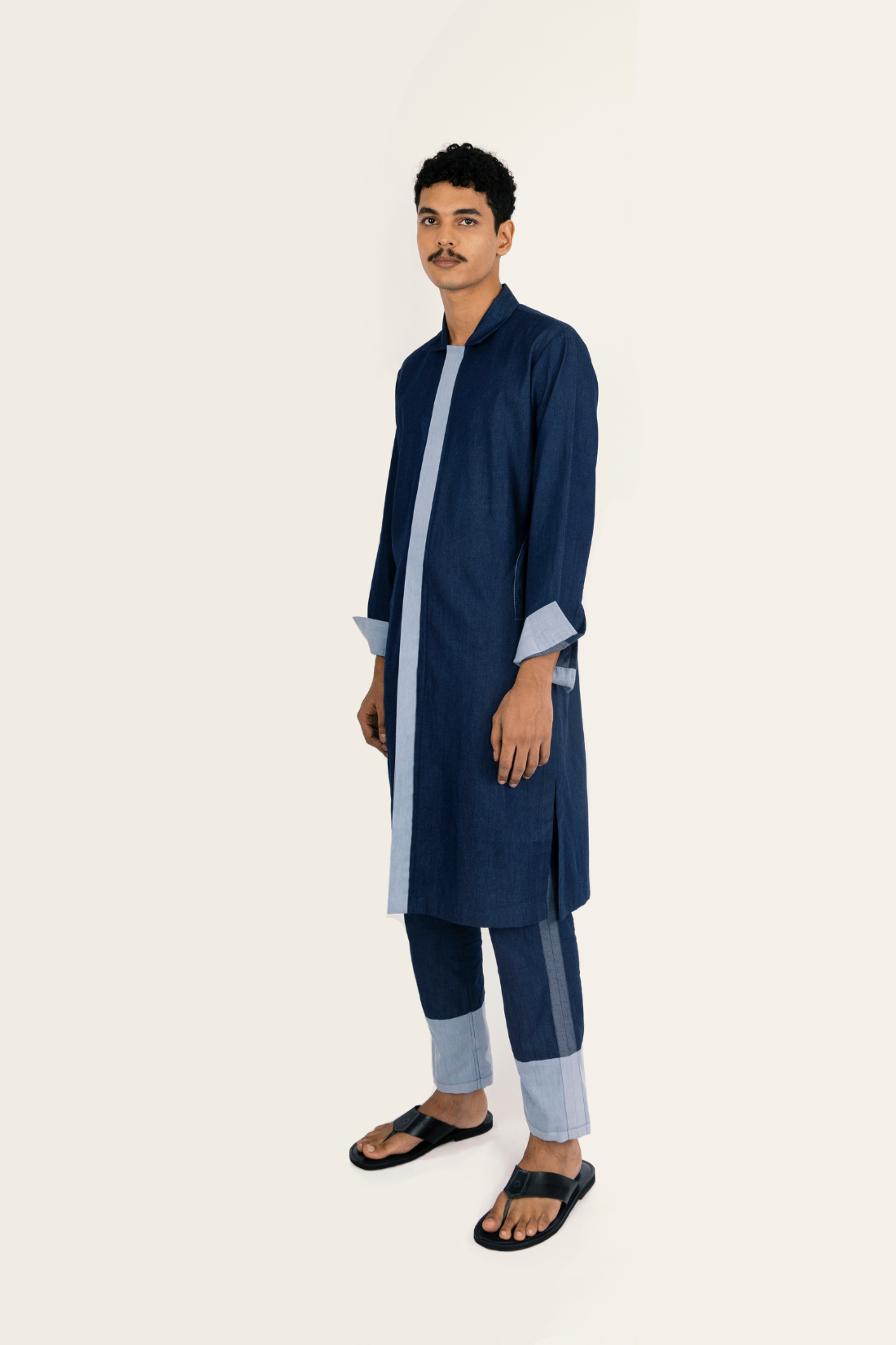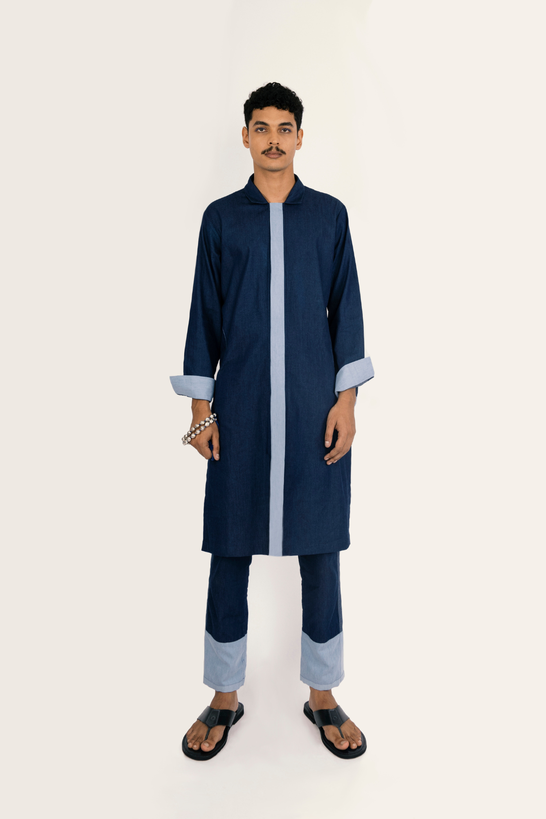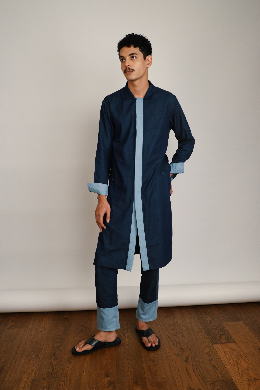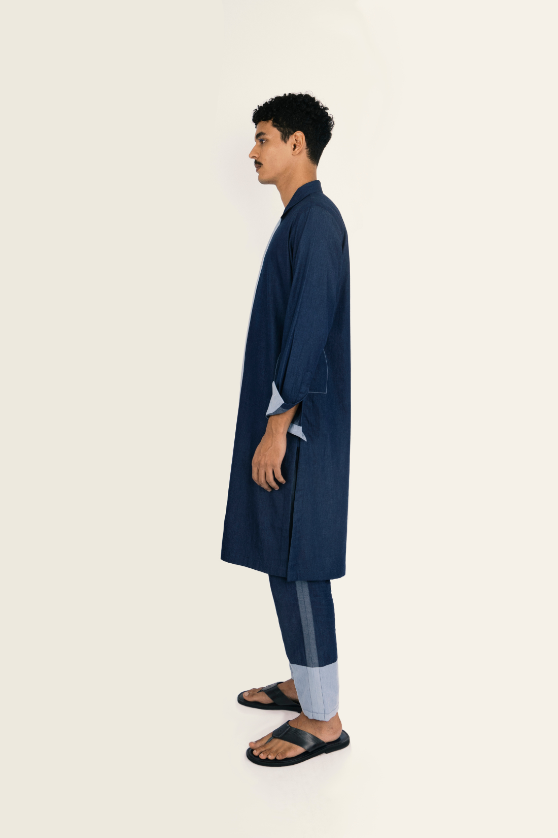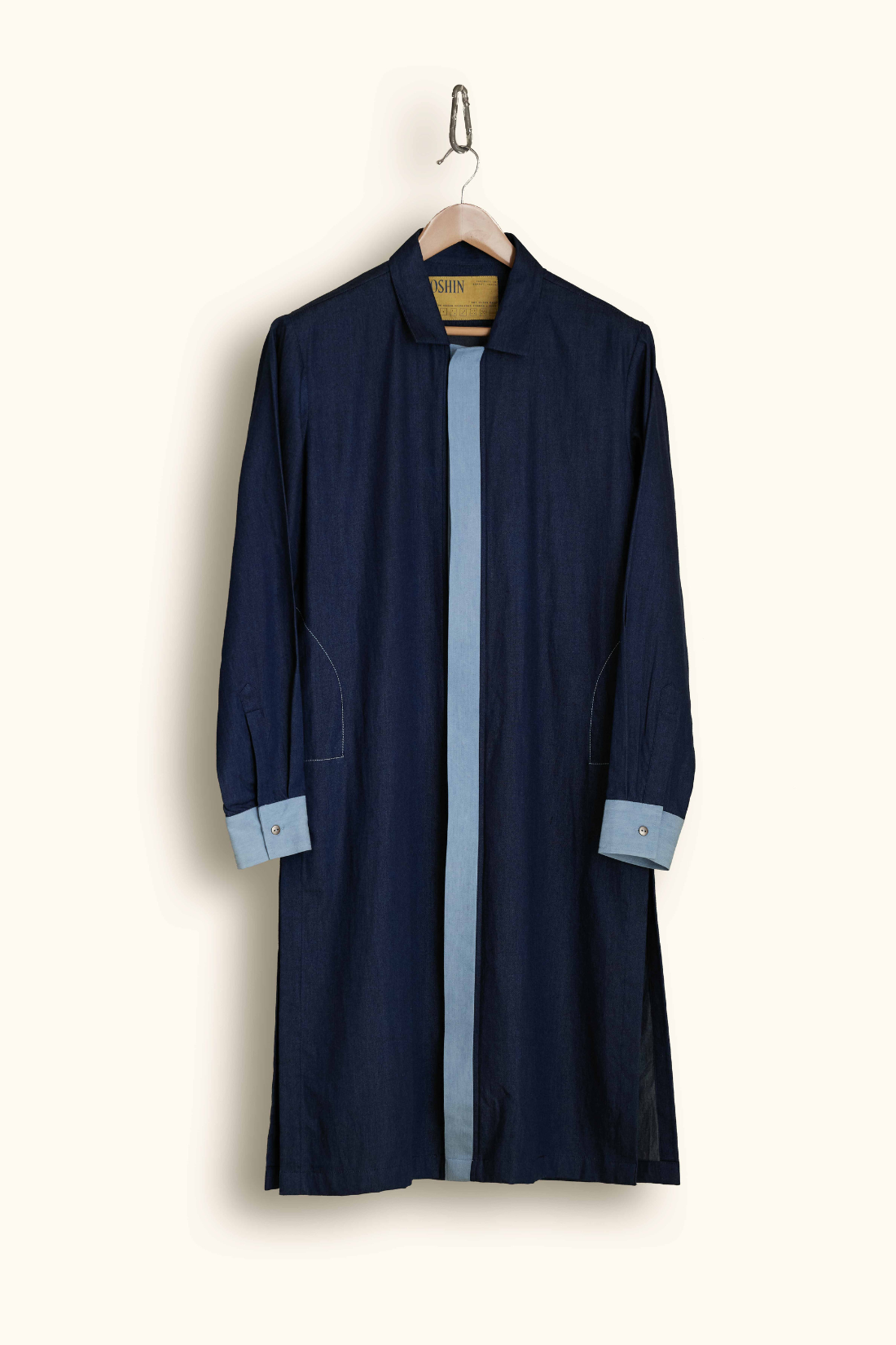 open collar style - wide contrast conceal placket - full length sleeves - regular contrast cuff - side pockets - side slit - regular fit