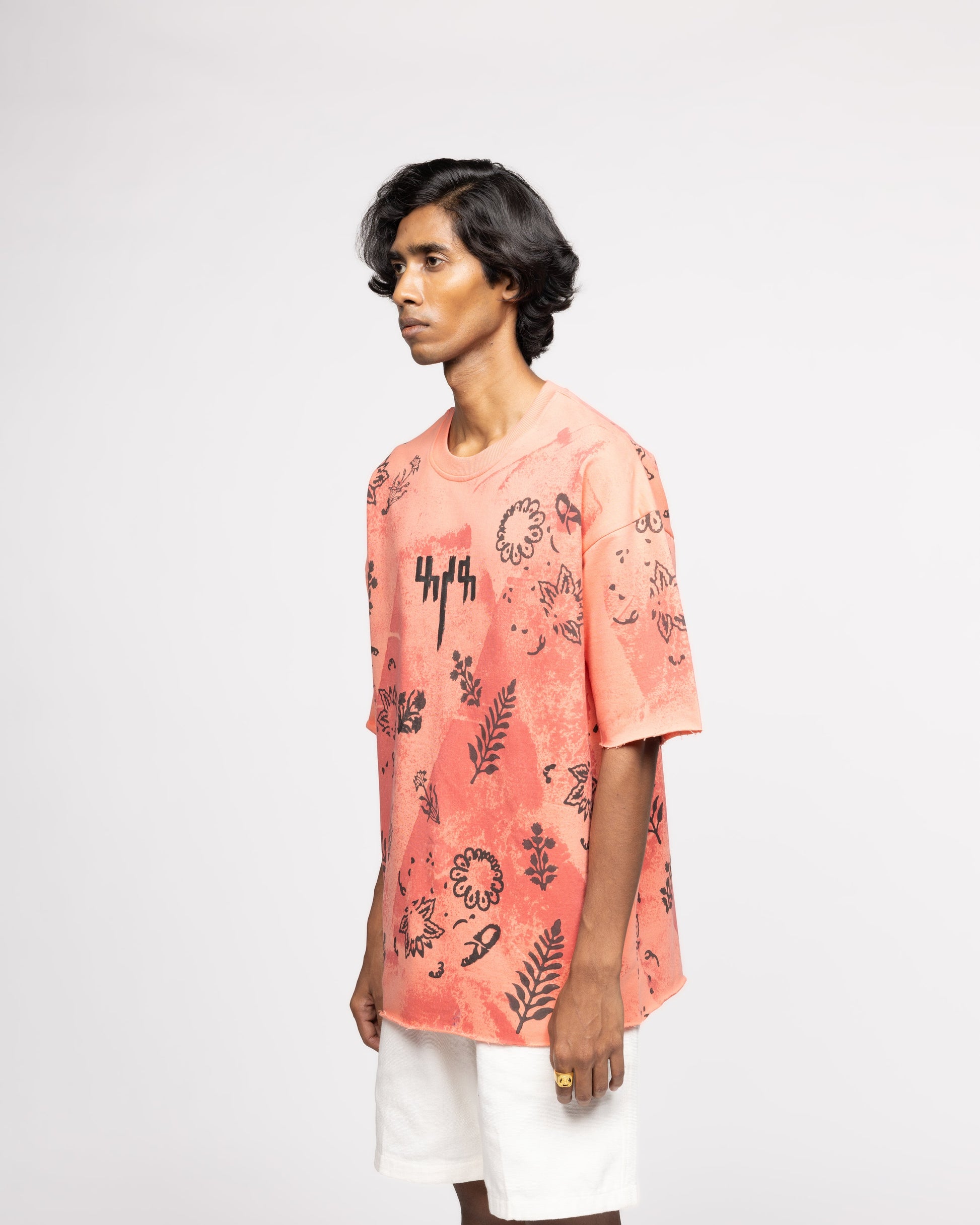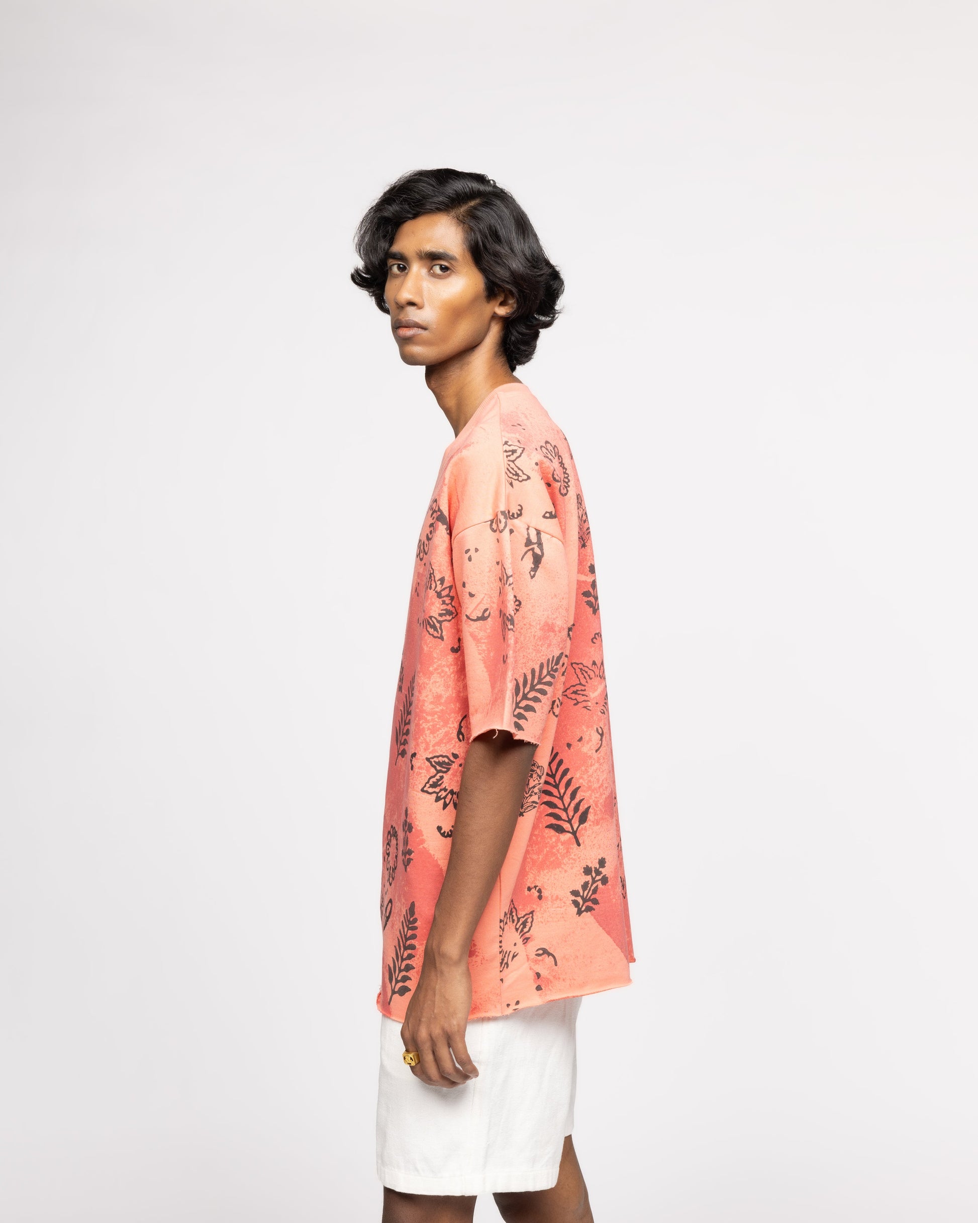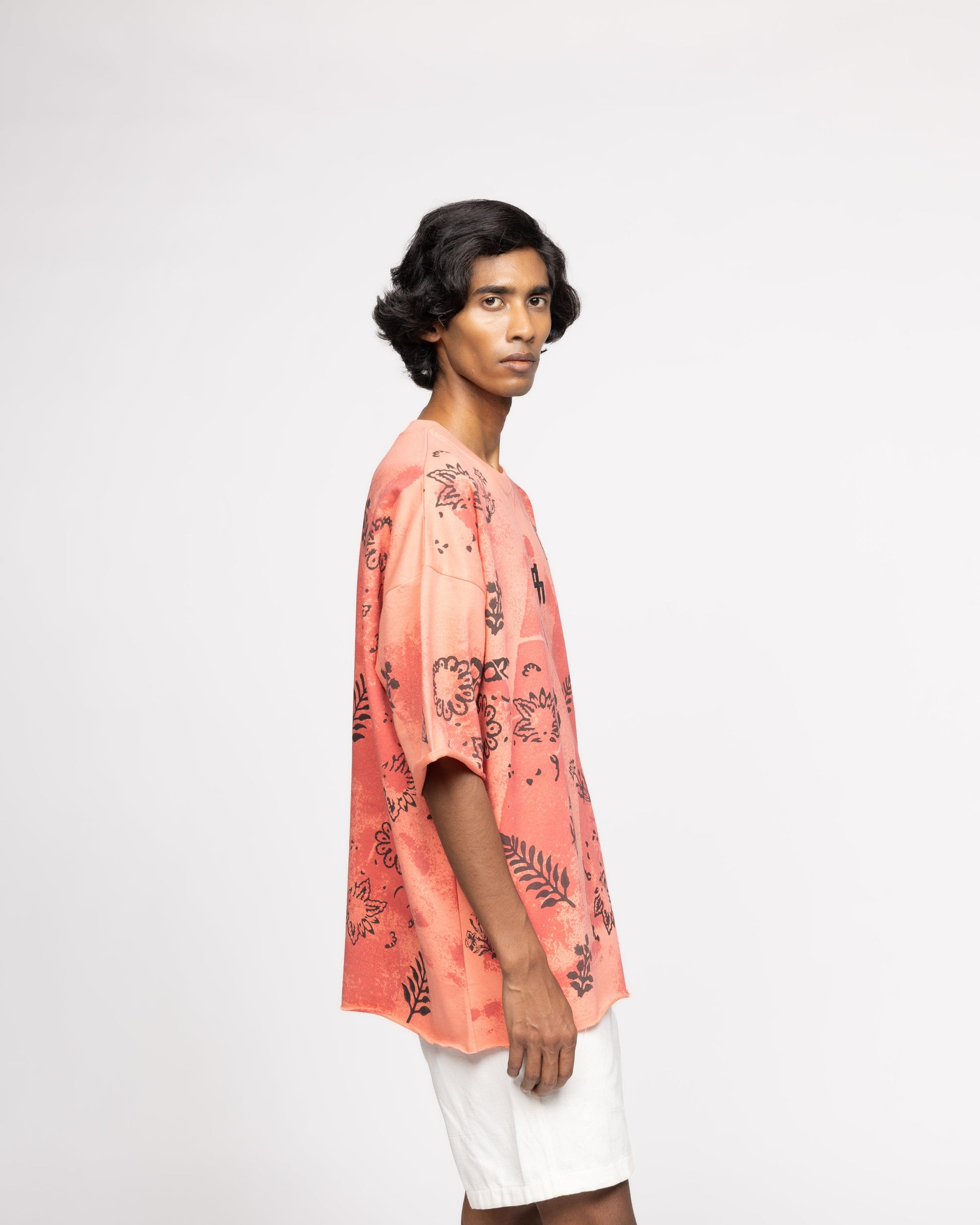 The Coral Block Printed Tshirt is a bold statement piece that embraces an expressive design language and the experimental nature that defines FARAK. Crafted from 100% organic cotton and featuring an oversized fit, the tee is intricately block printed throughout and is done by the skilled artisan Hari Om Ji, ensuring that each piece carries a touch of traditional craftsmanship.