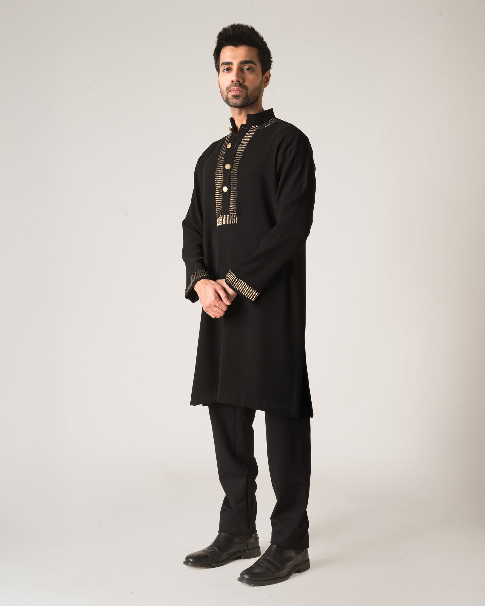 The model is 5’9”, wearing the size M. Kurta length: 40"