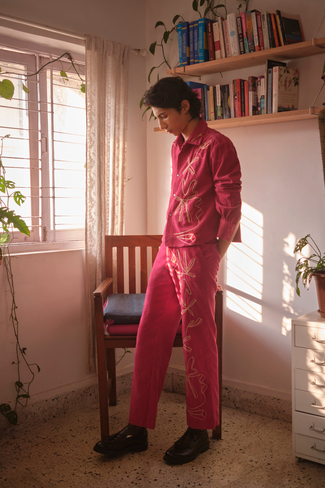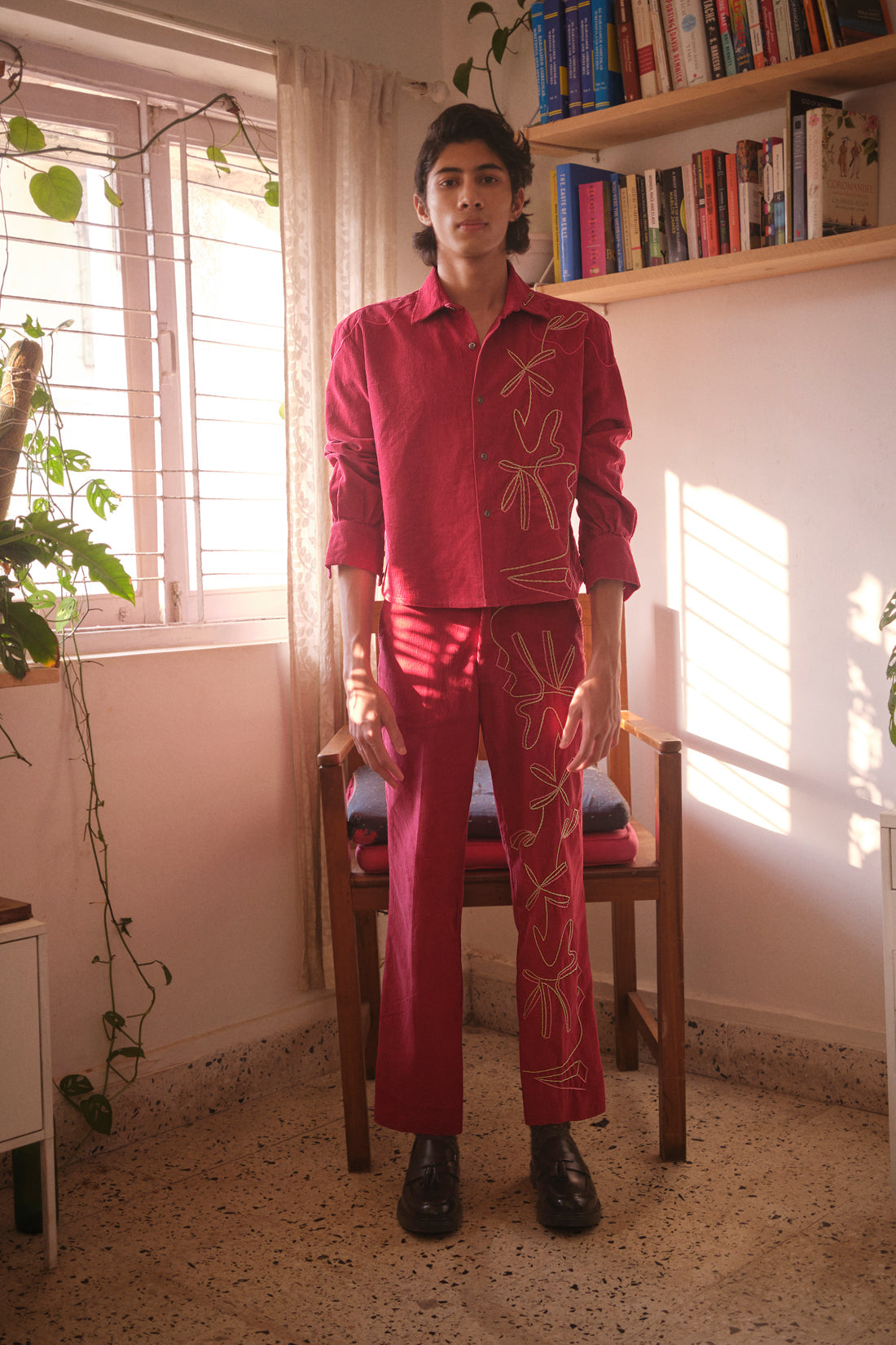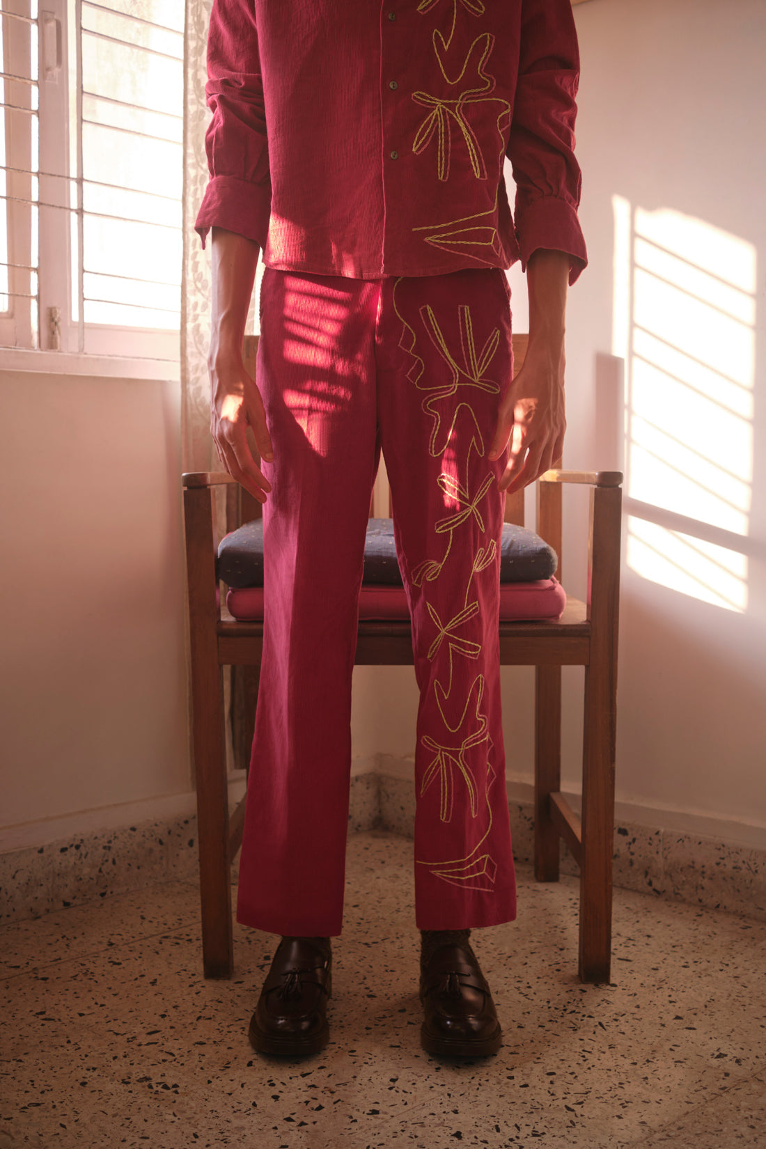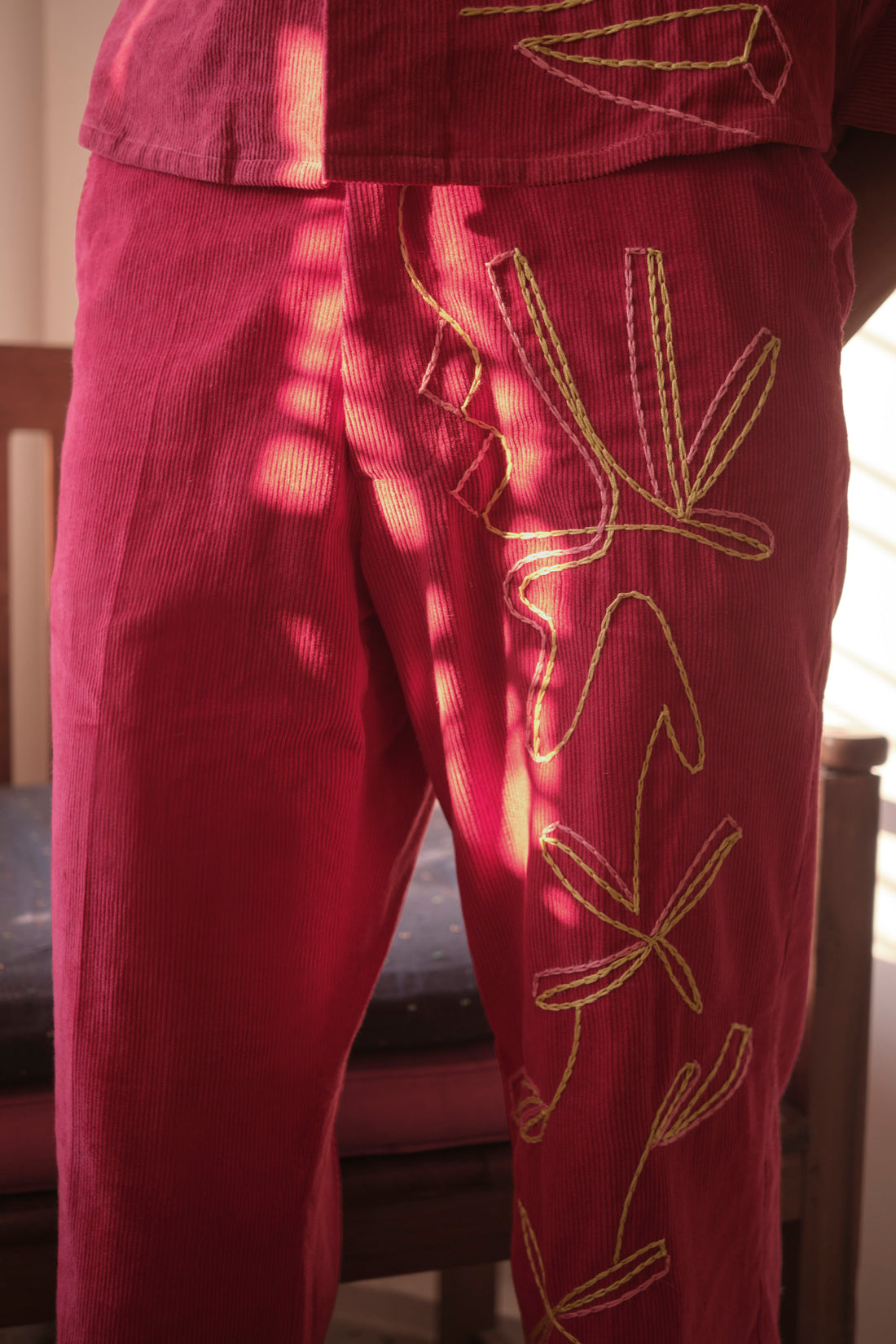 cotton thread hand embroidery - straight fit- two side pockets - full length - medium waist