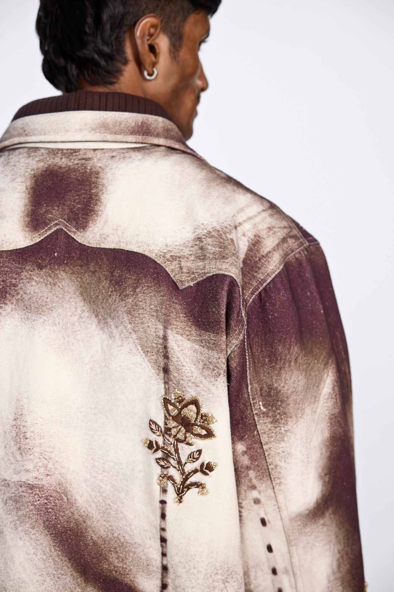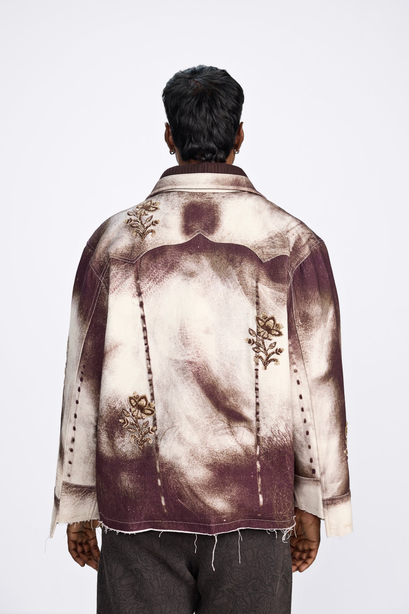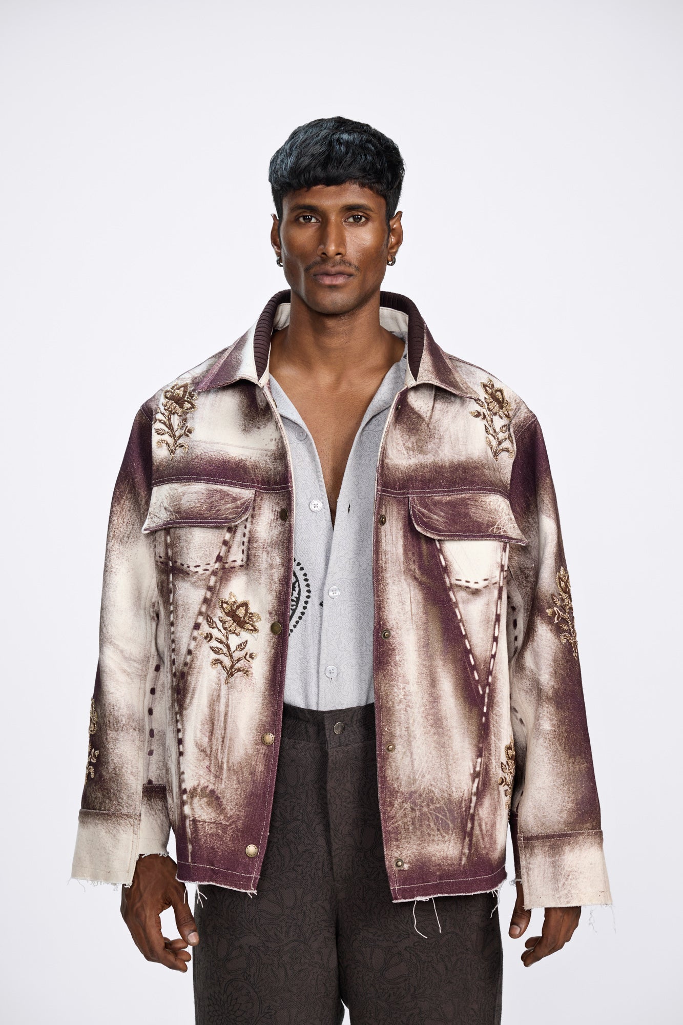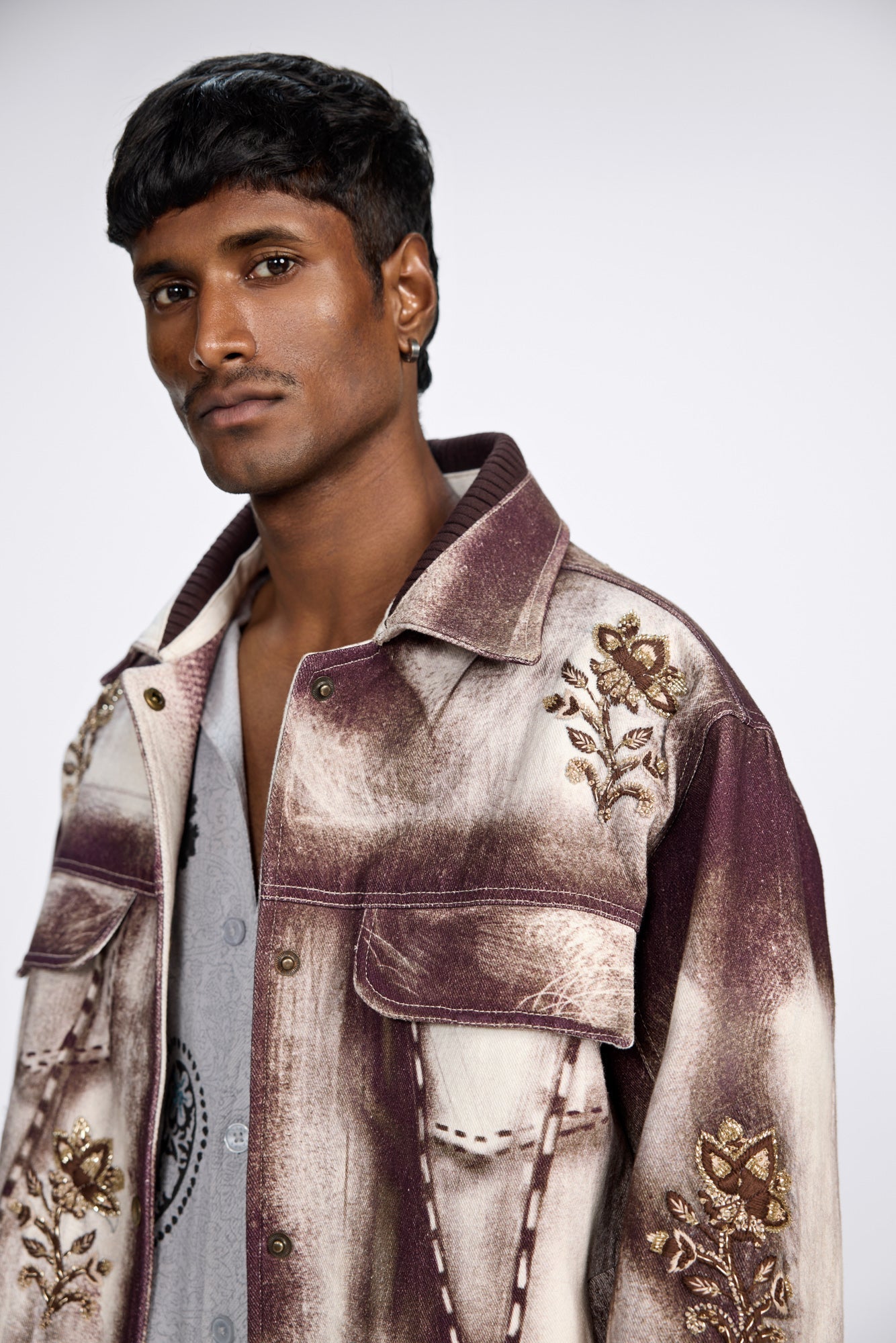 This handmade Dastaan jacket fuses raw craftsmanship with artistic expression. Featuring intricate embroidery and a burnished, airbrushed texture, it evokes a rugged yet refined aesthetic. The distressed finish and earthy tones capture a sense of nostalgia and rebellion, while the relaxed silhouette adds effortless edge. It’s not just outerwear—it’s a statement of soul, story, and street sophistication.