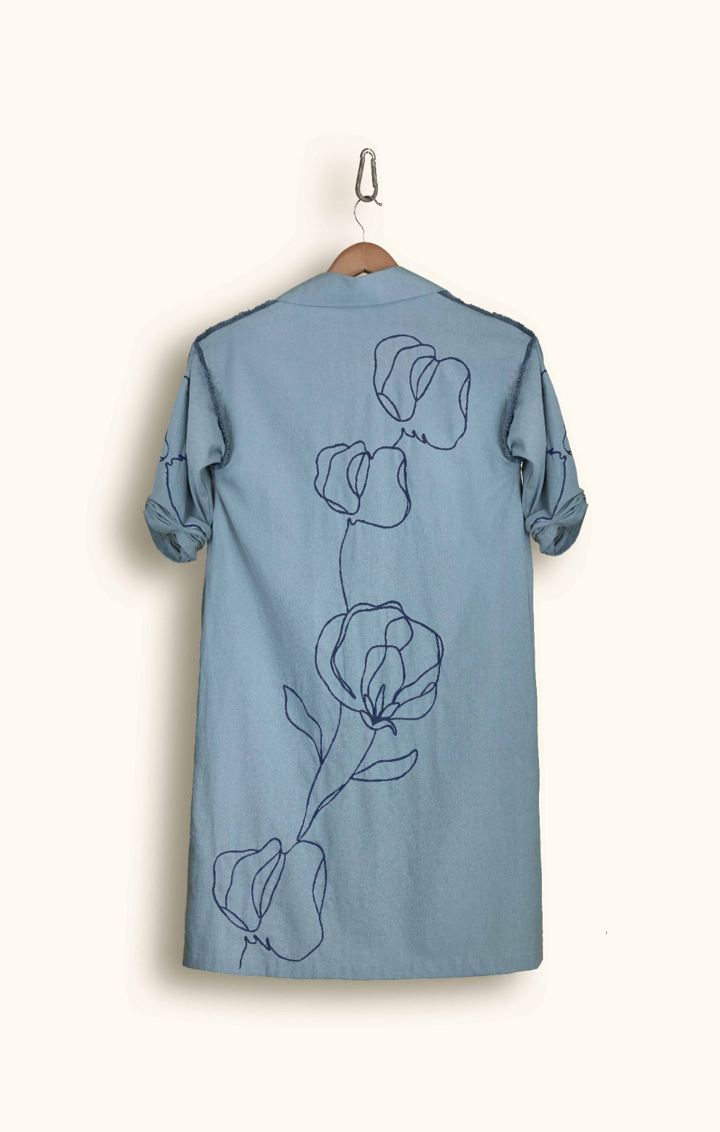 notched lapel - single-breasted front - side pockets - scrunched up sleeve drape - cotton cording embroidery - single button closure- oversized fit
