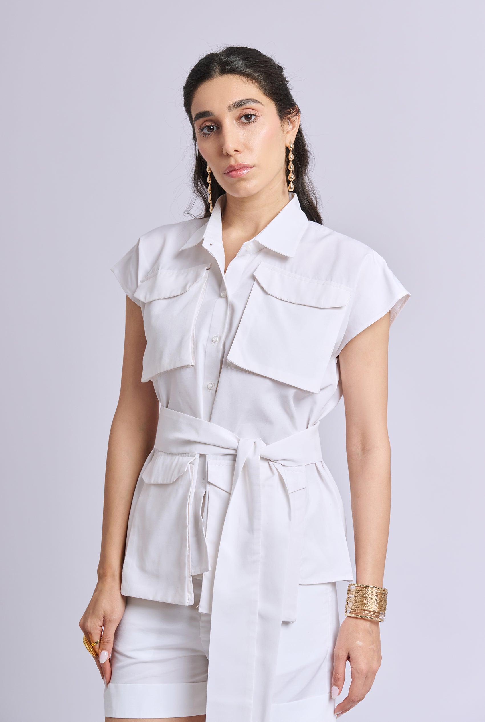 Easebelt White Oversized Three Piece Co-ord Set with Big Pockets and shorts