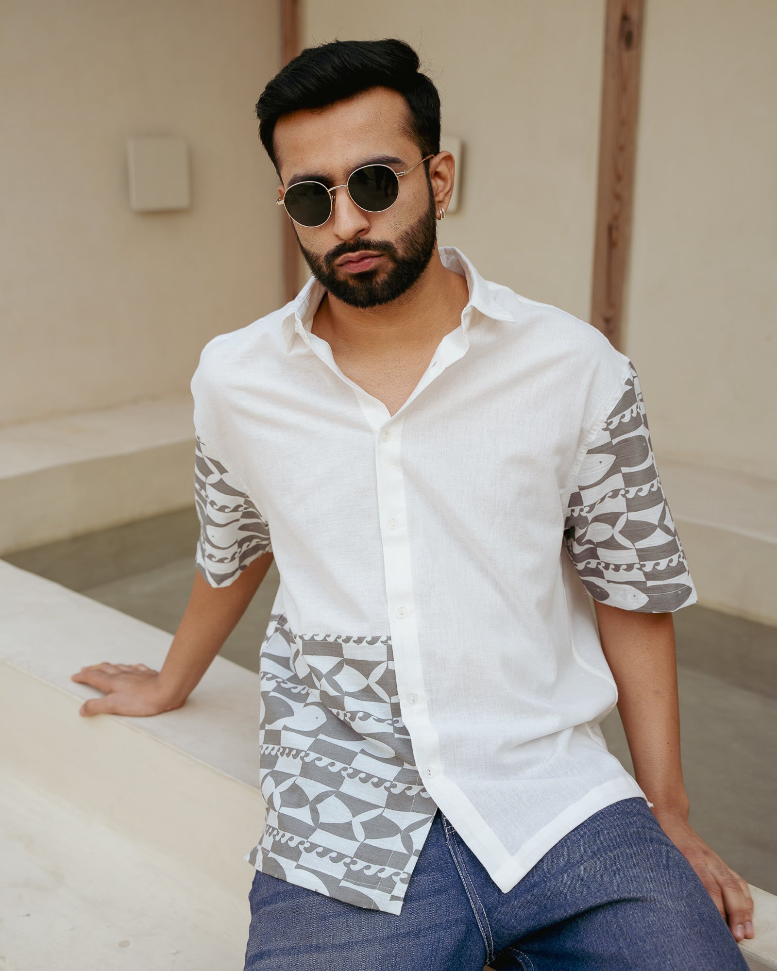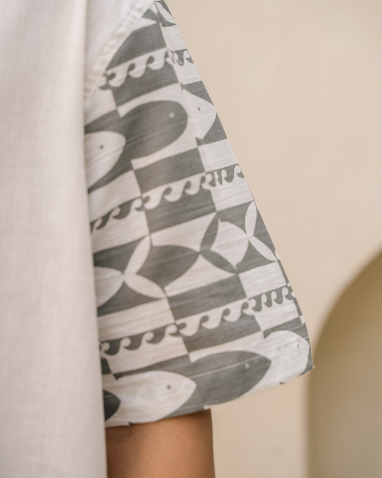 Stylish blended linen shirt with a unique fish print. Perfect for a relaxed vacations, summer parties or casual fridays at the offices.