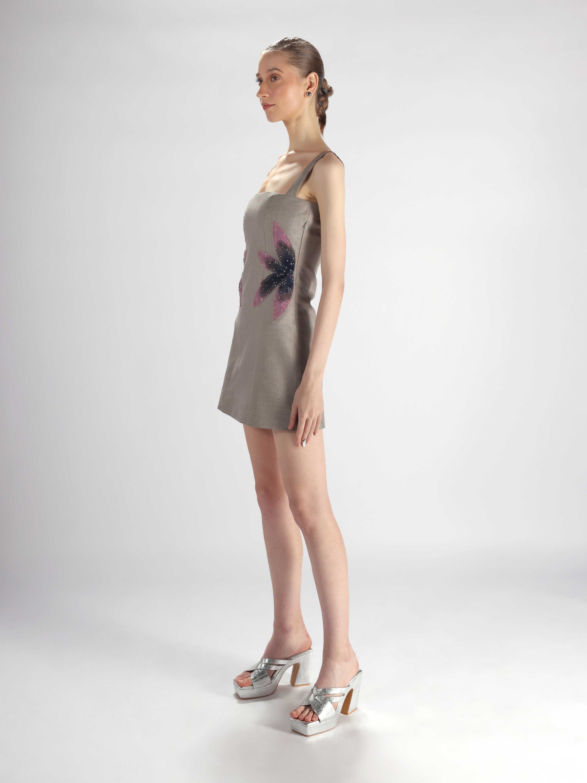 A versatile set featuring the Garden of Violets Blazer and the fitted Lillies Dress. The blazer's detailed embroidery and structured tailoring complement the dress's sleek silhouette and ombre floral design. Perfect for layered or standalone styling.