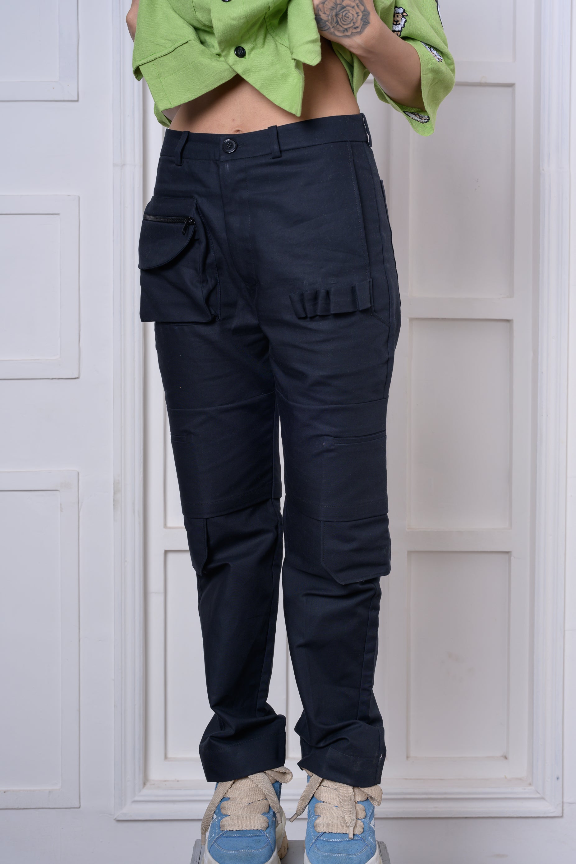 The Functional Pants Features Multiple pockets with different styles. Relaxed Fit, these are High wasted cargos with a straight fit.