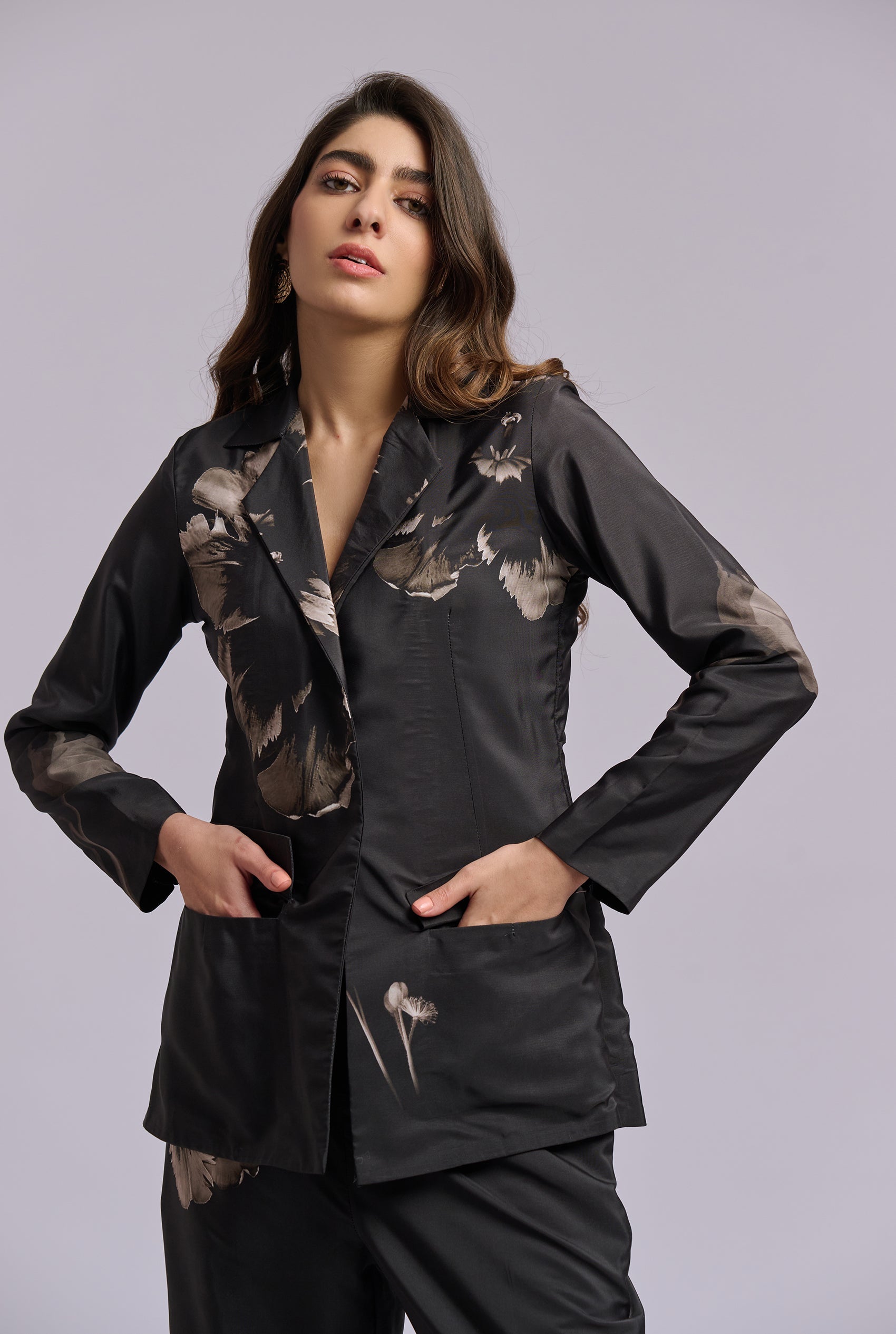 Gisele Black and Gold Flower Print Blazer Co-ord Set