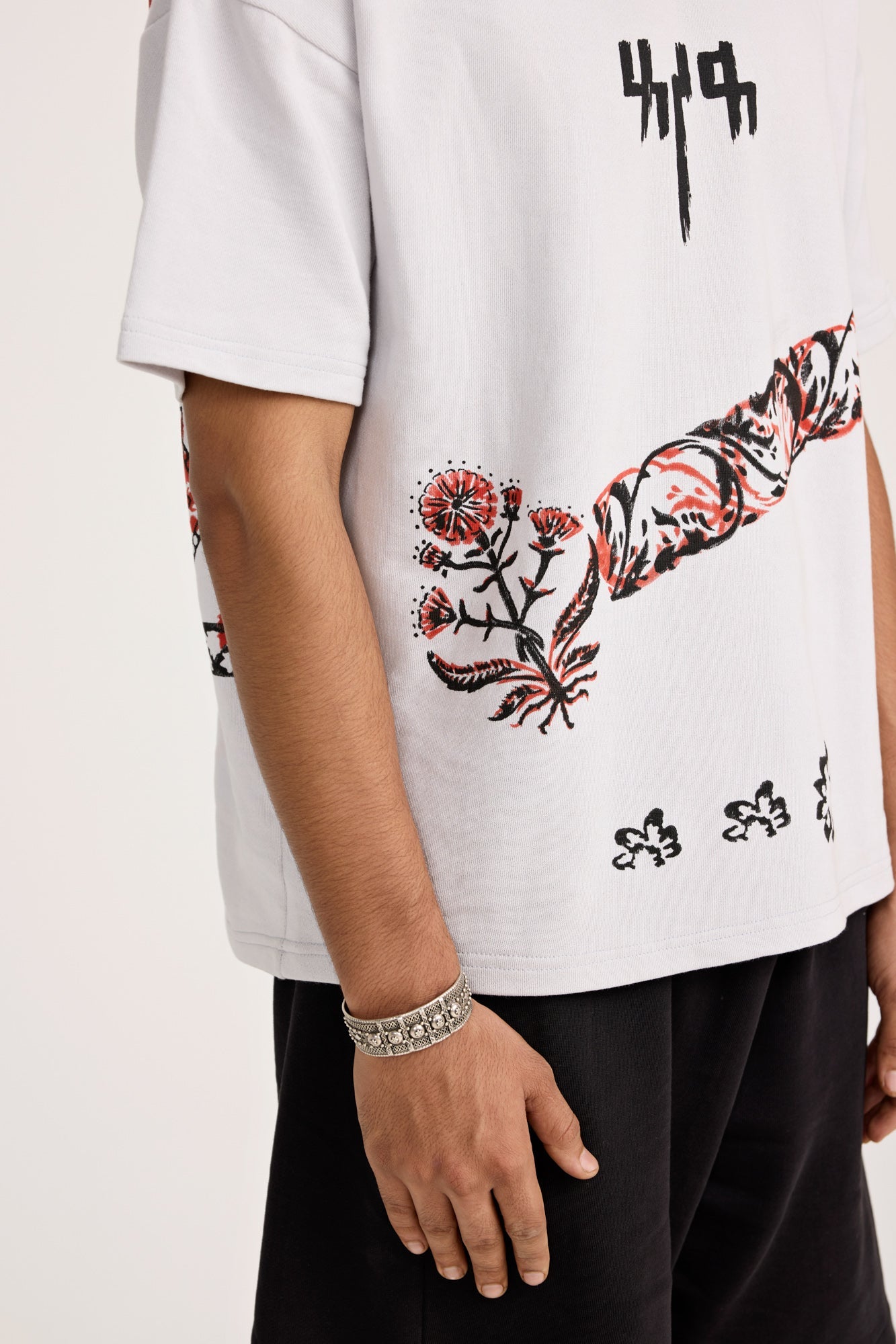 Introducing the Grey Block Printed Tee, where tradition meets innovation. Crafted by third-generation artisan Pankaj Sonawa from Jaipur, this tee reimagines classic block printing with a fresh perspective. By integrating diverse block printing elements into a cohesive design, it blends rich heritage with modern aesthetics, creating a unique pattern that honours tradition while making a contemporary statement.