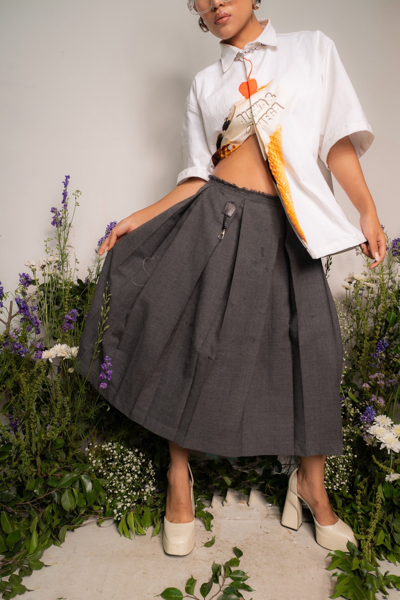 Introducing the Cain & Abel Skirt – a pleated midi skirt crafted from thick viscose, inspired by the first creation of Adam & Eve and the stark differences between Cain and Abel. This skirt boasts a unique feature: it's convertible, shape-shifting from something dramatic and elegant to something minimal and formal with just a mere hook. It's one of the most versatile pieces in your wardrobe, perfect for transitioning from office to party days effortlessly.