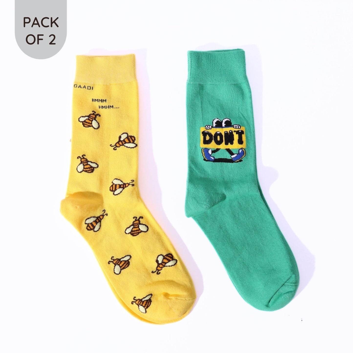 Introducing our Honeybee & Don't Follow Me Crew Socks - a playful pack of 2 unisex socks made from soft, breathable cotton. These unique socks feature a honeybee on one and a fun "Don't Follow Me" message on the other, making them the perfect addition to any sock collection. Buzz on over and pick up a pair today!