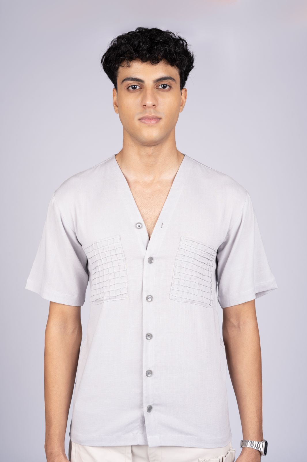 Introducing our must-have Jersey Shirt, the essential summer staple. Crafted from a luxurious blend of linen and cotton, it promises lightweight comfort and breathability for those sunny days ahead. elevating the classic design, the pocket features chic checks pin tucks, adding an edgy twist to a simple silhouette. Get ready to turn heads effortlessly this season.