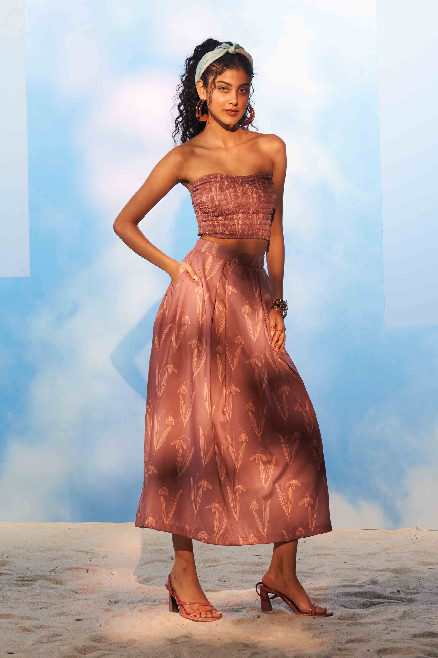 - Charming hand-painted prints on midi-skirt