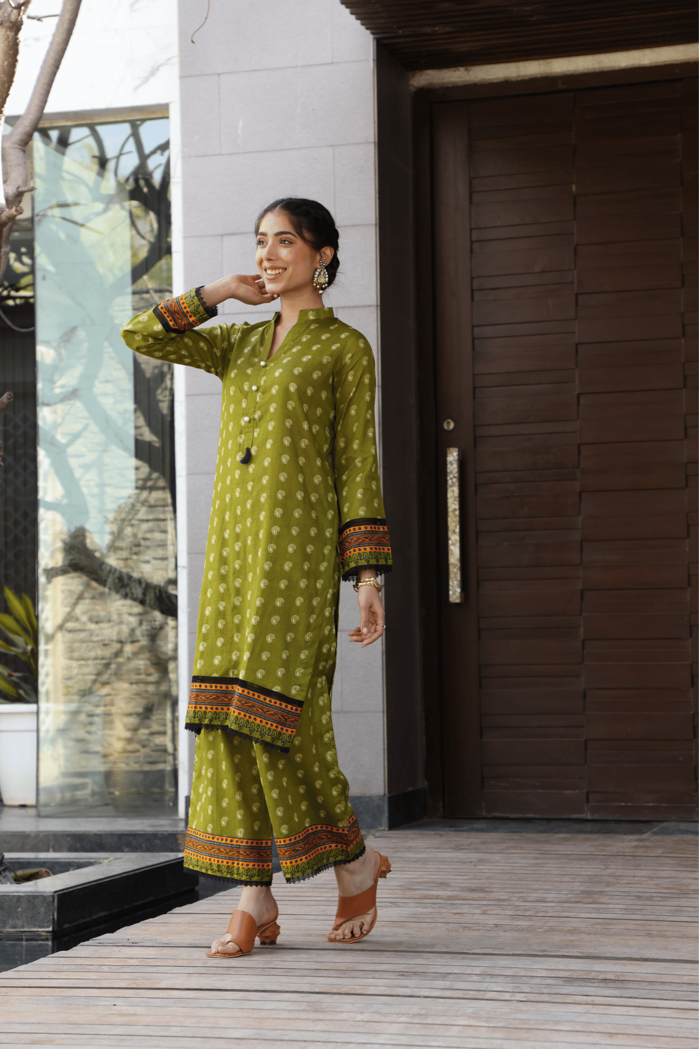 Our Olive Green Co-ord Set is designed to bring colour and comfort to your everyday style.