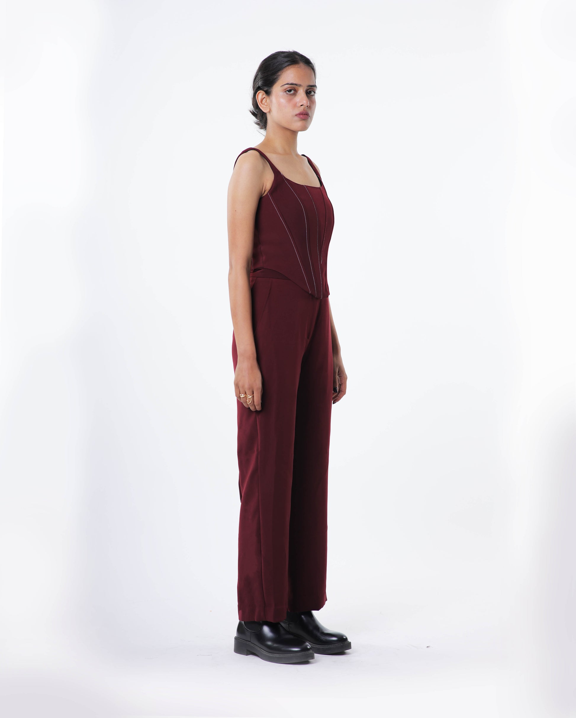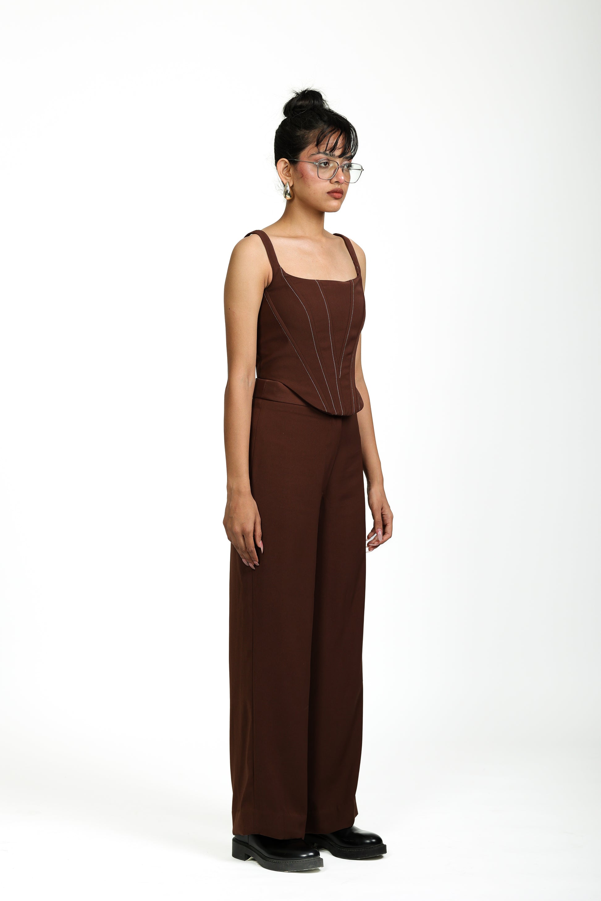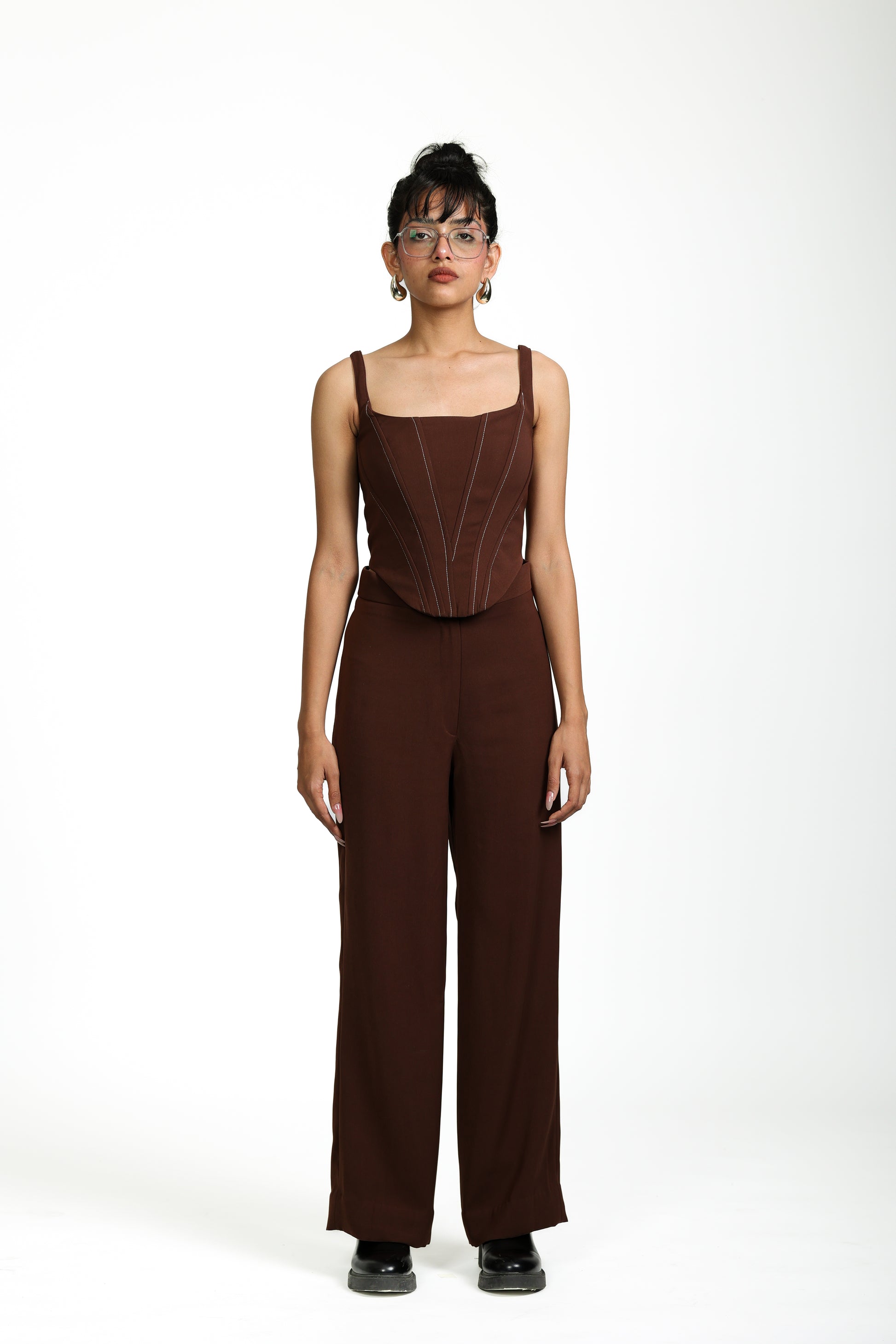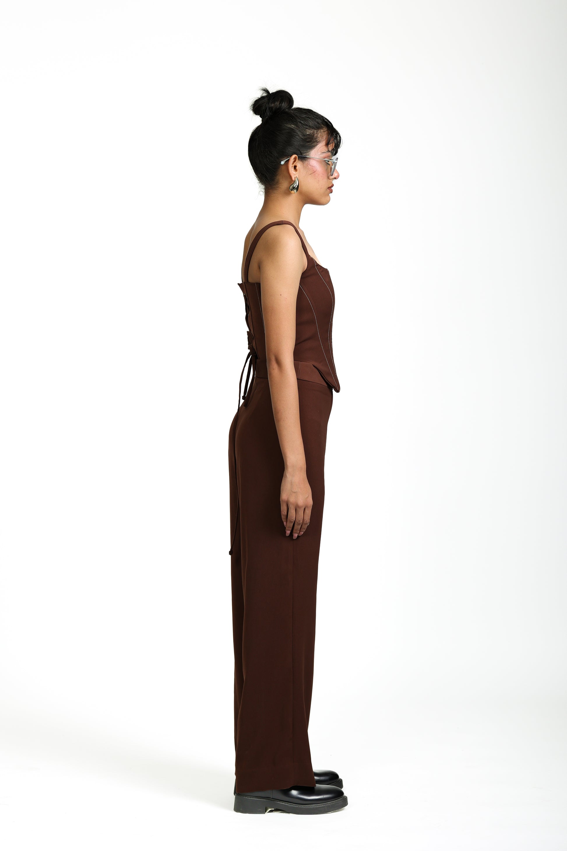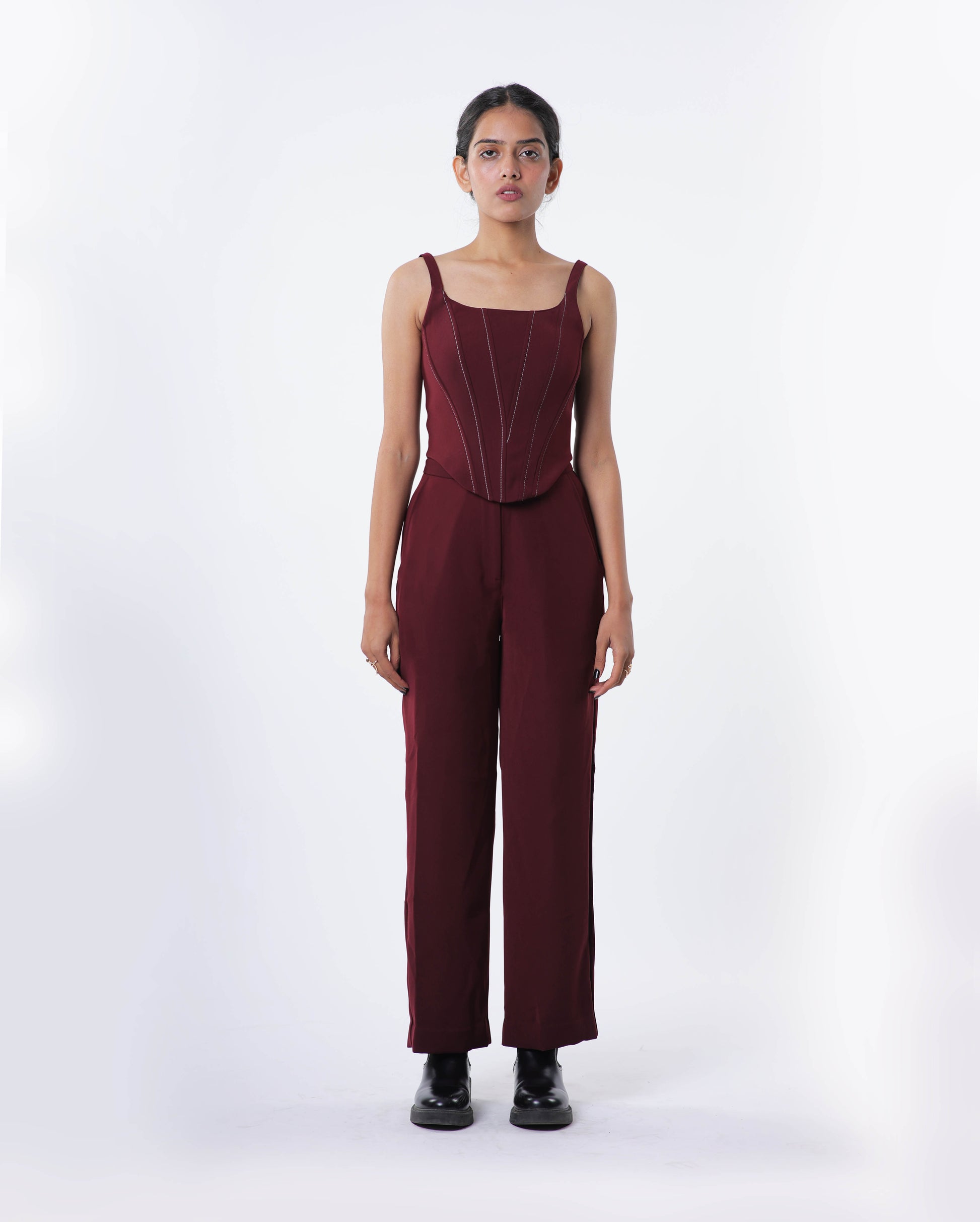 Knotty corset with white stitch detail for your date night, it truly shines when paired with high waisted pants. The back tie-up option ensures flexibility, accommodating slight weight fluctuations.