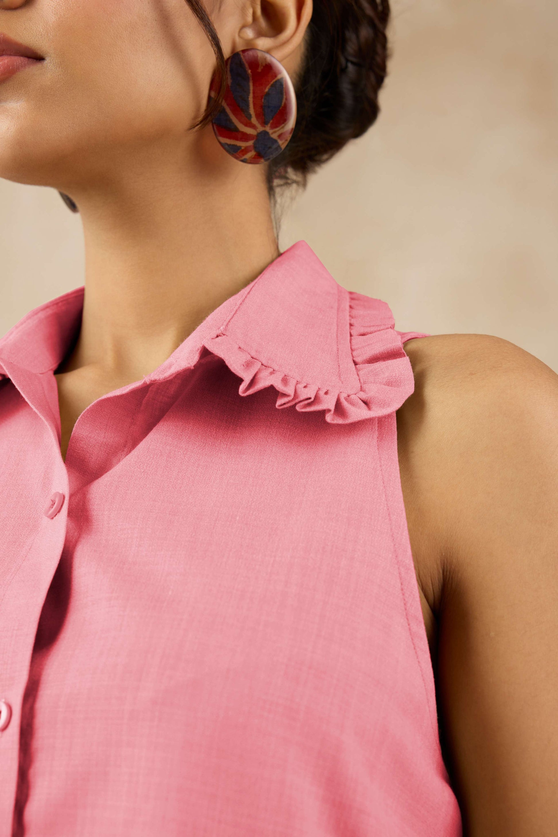 The Sydney Set is the ultimate mix of modern elegance and playful flair. Designed in a rich Blush Pink colour, this co-ord features a chic crop top with delicate frill detailing on the collar and hem, paired with oversized wide-leg pants for a relaxed yet statement look. The muted neutral tone makes it a versatile pick, perfect for both day and night styling.