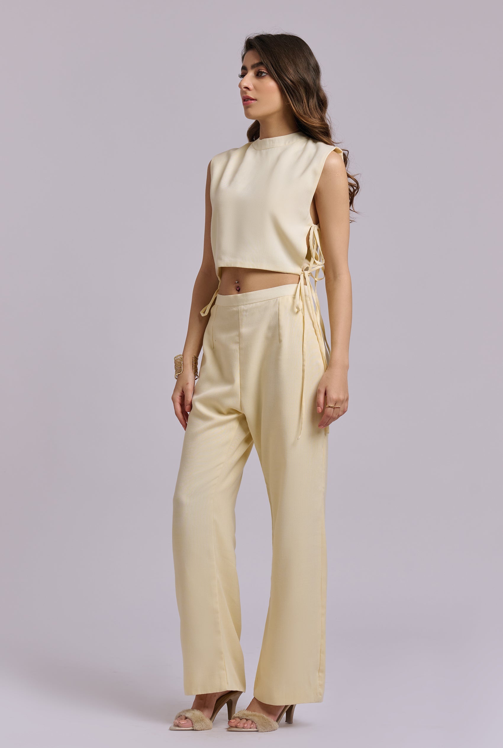 Luminé Butter Yellow Co-ord Set with Tie up Top and Pants